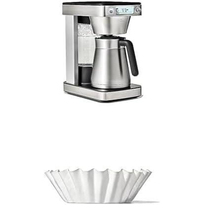 With the OXO BREW 12-Cup Coffee Maker with Podless Single-Serve Function, brew truly flavorful coffee that meets the Specialty Coffee Association’s (SCA) Golden Cup standard—whether you’re making a full carafe or a single mug. The water tank preheats so the water hits the grounds at the SCA preferred temperature: 194 F to 205 F, ensuring a faster, more flavorful brew. Choose from two brew basket sizes, based on your needs: 2-4 cups (small) or 5-12 cups (large). Coffee for one? The podless single-serve option brews directly into a mug without the need for a pod and the included drip tray elevates your coffee mug to prevent splashes during brewing. Need to brew a larger batch? The double-wall, thermal carafe holds up to 12 cups (60 ounces). Pre-set the pot to suit your plans, using the interactive display screen. Simply select the amount you’d like to brew and whether you’d like to brew now or later, then press start. Never fuss with turning or opening the carafe lid before pouring, thanks to the carafe’s brew-through, pour-through lid. The 12-Cup Coffee Maker has a sleek, streamlined stainless steel design that fits under most cabinets and is easy to maintain. The glass water tank can be cleaned by hand and using OXO Brew’s Descaling Solution (sold separately) descales the interior of the machine. The carafe and lid are hand washed only. The carafe lid’s mixing tube, removable Rainmaker, drip tray, brew baskets, and coffee scoop are top-rack dishwasher safe. Coffee filter replacements also available.