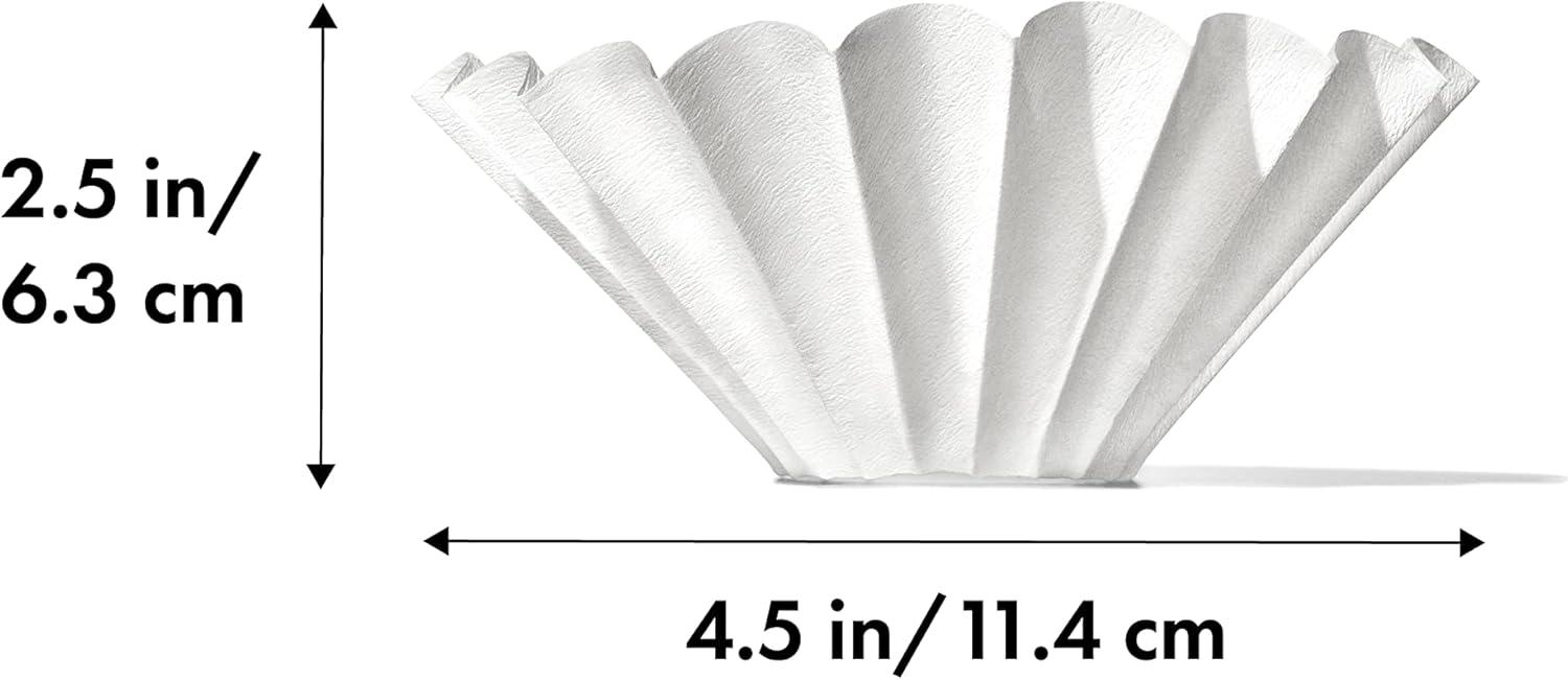The OXO Brew 8-Cup Coffee Maker allows you to brew 1-4 cups directly into your favorite mug, and the Single Serve Basket Style Small Coffee Filters are designed to optimize that experience. The basket-style filter has a flat bed to encourage even extraction for consistent flavors. The classic wave design helps promote air and coffee flow, whether you’re brewing one cup or filling up your travel mug with 4 cups. The FSC-certified filters are totally chlorine free (TCF) and completely compostable. To use, simply place the single-serve insert into your 8-Cup Coffee Maker’s brew basket, then add the filter. Add ground coffee to the filter, water to the tank, and select the “2-4 cups” option to brew. 100 filters included.