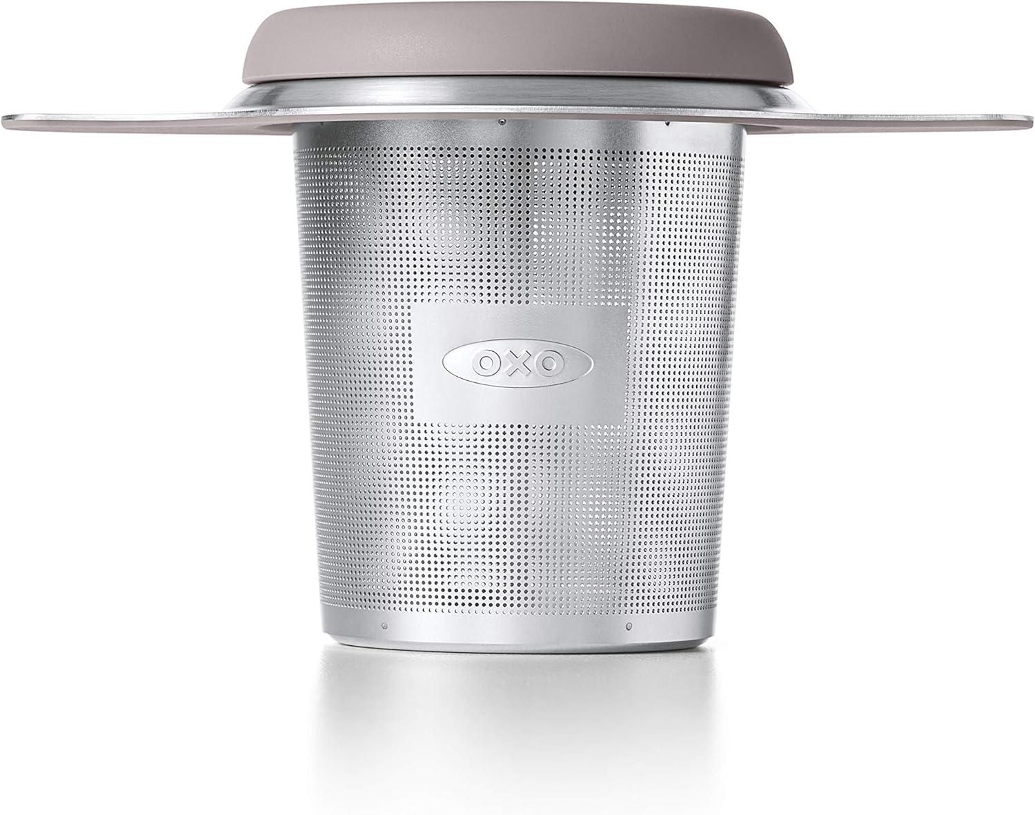 Brew the perfect cup of your favorite loose leaf tea with the OXO Tea Infuser Basket. The large-capacity stainless steel basket is calibrated for maximum flavor extraction and shaped to sit nicely in any mug. The etched hole pattern keeps even the tiniest tea particles contained, while the dual-function lid retains heat and doubles as a drip tray to reduce mess. Tea infuser works with all loose teas, including green tea, black tea, and herbal tea. Stay-cool silicone touchpoints ensure the entire brewing experience is a ritual you savor.