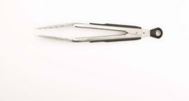 Our tongs feature brushed stainless steel with soft, non-slip handles and comfortable thumb rests. Easily lock in the closed position for convenient storage. The large pull-tab for locking also doubles as a hole for hanging. Also available in 9-inch and 16-inch sizes.