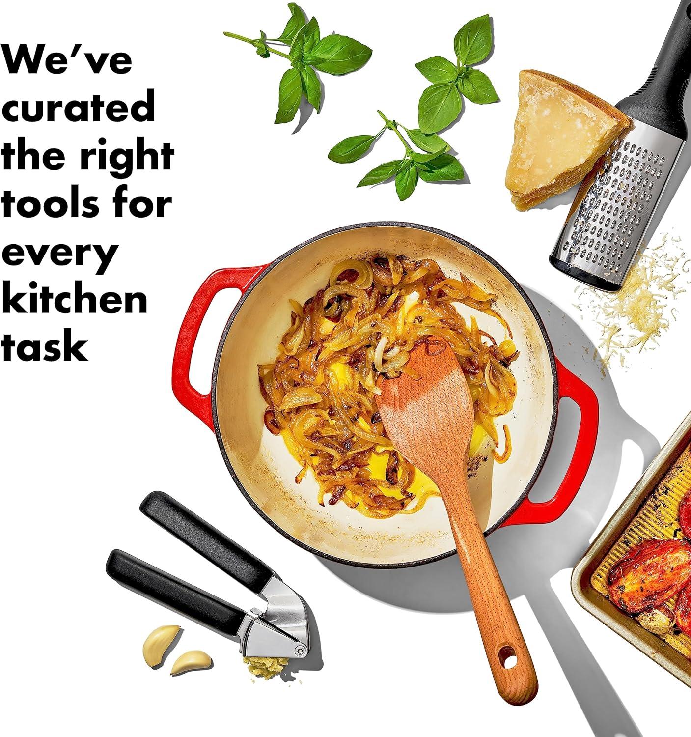 Introducing the OXO Good Grips 20 Piece Everyday Kitchen Set, the ultimate collection of kitchen essentials to elevate your cooking experience. This comprehensive set includes 1 wooden spoon, 1 wooden slotted spoon, 1 wooden turner, 1 4-piece measuring cup set, 1 4-piece measuring spoon set, 1 silicone ladle, 1 silicone everyday turner, 1 pair of 12″ stainless steel tongs with silicone heads, 1 silicone everyday spatula, 1 11″ silicone balloon whisk, 1 swivel peeler, 1 garlic press, 1 etched grater, and 1 large utensil holder for easy storage. Crafted with the highest quality materials, such as wood, stainless steel, and silicone, each utensil in this set is designed for durability and versatility. The OXO Good Grips handles provide a comfortable grip, ensuring precise control while cooking. With the included measuring cups and spoons, you can achieve accurate measurements for perfect recipes every time. The large utensil holder keeps all the tools organized and within reach, making it convenient to grab the right tool for any cooking task. Upgrade your kitchen with the OXO Good Grips 20 Piece Everyday Kitchen Set and enjoy a seamless cooking experience like never before.