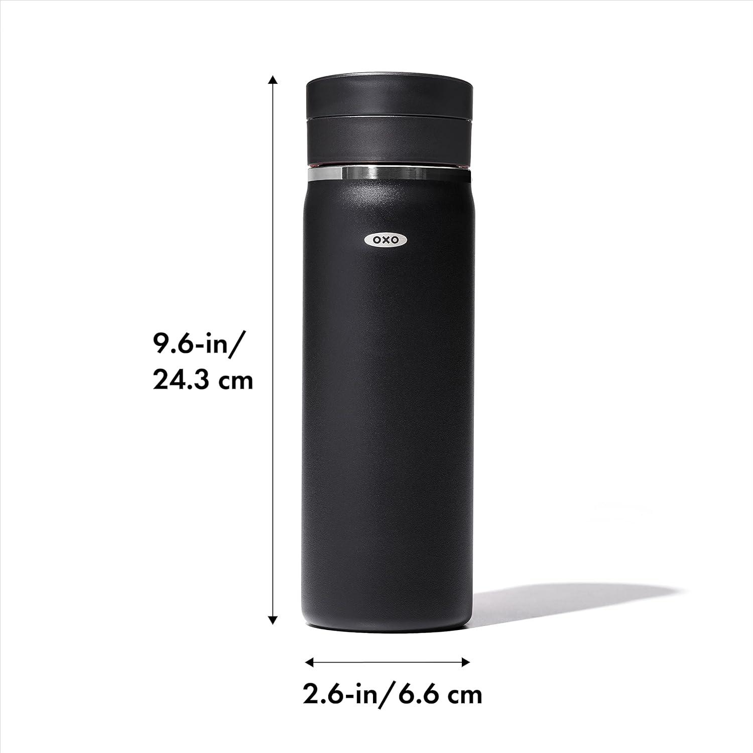 Whether your first sip is at the kitchen counter, in the car or on a walk with the dog, with the OXO Thermal Mug with SimplyClean™ Lid, you can enjoy your favorite brew without missing a beat. Professional-grade stainless steel allows the flavor of your drink to shine through, while the BetterTemp™ vacuum insulation keeps liquids hot for 12 hours or cold for 24 hours. The SimplyClean™ lid twists open for sipping and fully disassembles for thorough cleaning. A sweatproof coating provides a secure grip no matter where the day takes you. This travel mug is sized to fit most coffee makers and cup holders for easy brewing and stowing. Dishwasher safe.