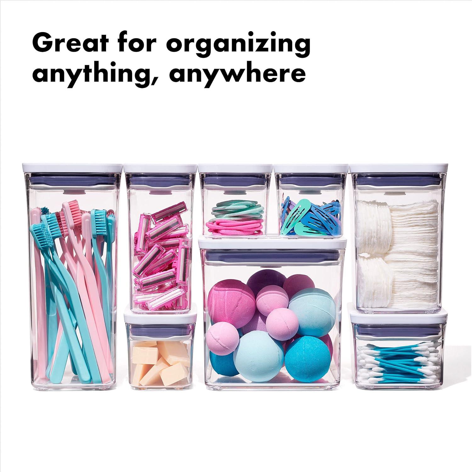 The OXO good grips two-piece pop container value set is the key to keeping dry foods fresh and countertop clutter-free. Airtight, stackable, space-efficient, and now completely dishwasher safe, These containers can be customized to fit any space. This three-piece set is perfectly calibrated for kitchen essentials like 1 lb boxes or bags or brown sugar, coffee, tea and snacks. With a handy fill line to guide you, curved corners for smooth dispensing and sturdy, BPA-free construction pop containers take tidying to the next level. Pop containers aren't just for kitchens: use them any place you want more organization. Set includes: three 1.1 Qt containers ideal for 1 Lb of brown or confectionery sugar, tea and snacks.