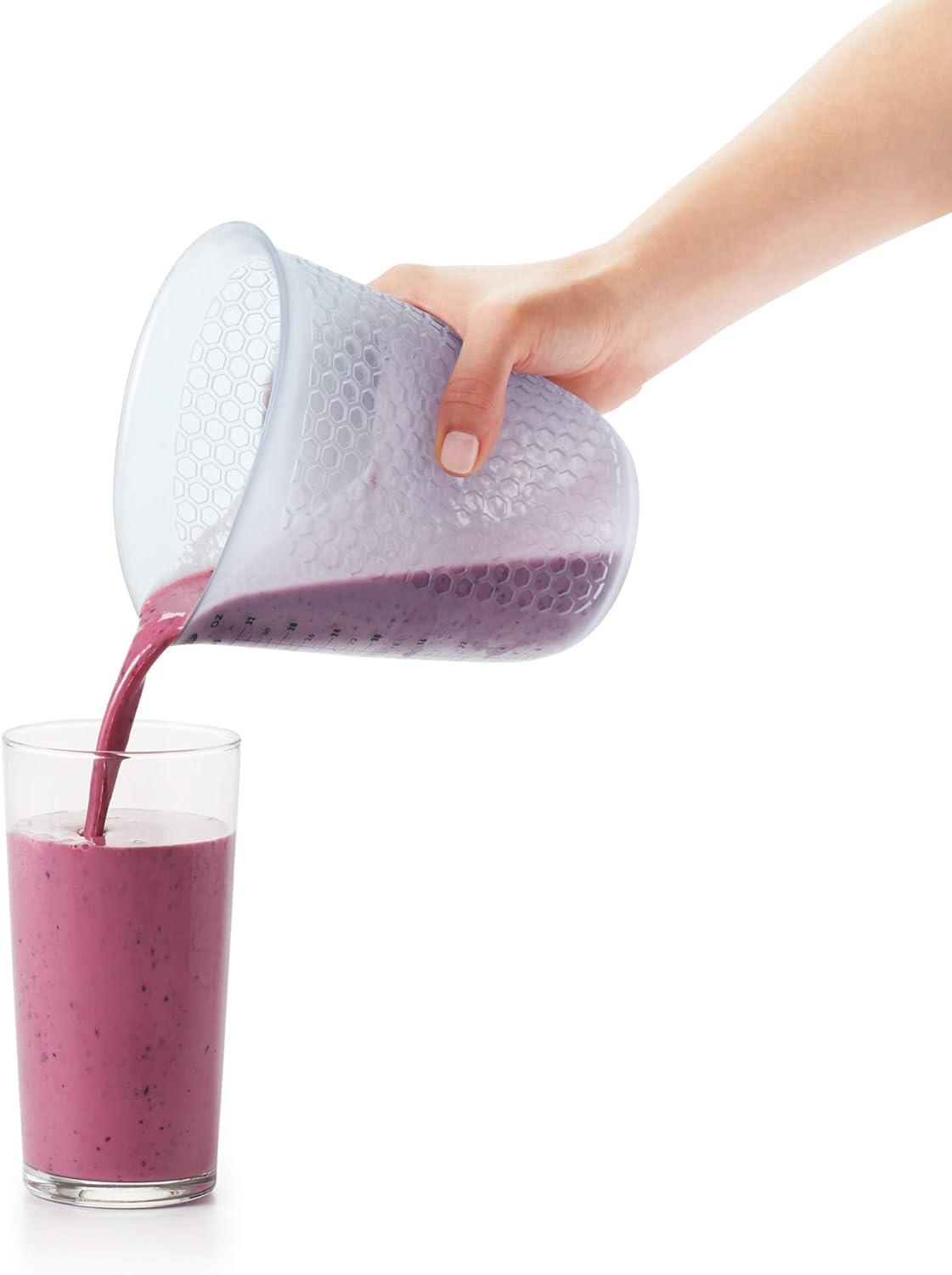 With a design inspired by a pattern found in nature, the OXO Good Grip Squeeze & Pour Silicone Measuring Cups make heating up ingredients like butter and chocolate easy and safe. The honeycomb pattern on the outside of the Silicone Measuring Cups dissipates heat, making it safe to touch, even right out of the microwave. The pattern also gives the flexible Cups structure, allowing you to hold and squeeze the Silicone Measuring Cups to form a narrow spout for precise pouring. The durable, BPA-free Cups feature convenient measurement markings and flat bases for stability in the microwave and on countertops. The Silicone Measuring Cups come in 2 cup, 1 cup and mini sizes and are dishwasher safe.