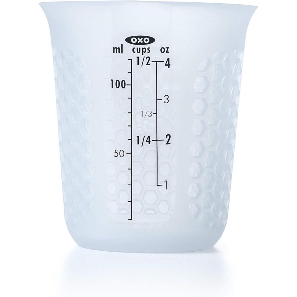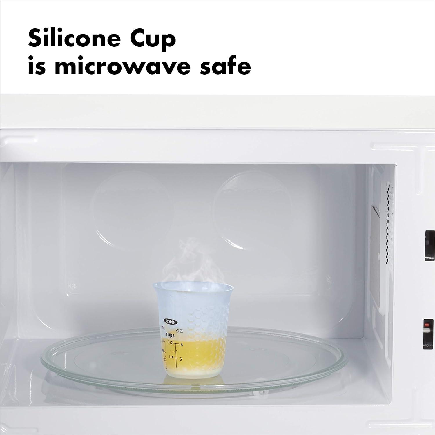 With a design inspired by a pattern found in nature, the OXO Good Grip Squeeze & Pour Silicone Measuring Cups make heating up ingredients like butter and chocolate easy and safe. The honeycomb pattern on the outside of the Silicone Measuring Cups dissipates heat, making it safe to touch, even right out of the microwave. The pattern also gives the flexible Cups structure, allowing you to hold and squeeze the Silicone Measuring Cups to form a narrow spout for precise pouring. The durable, BPA-free Cups feature convenient measurement markings and flat bases for stability in the microwave and on countertops. The Silicone Measuring Cups come in 2 cup, 1 cup and mini sizes and are dishwasher safe.