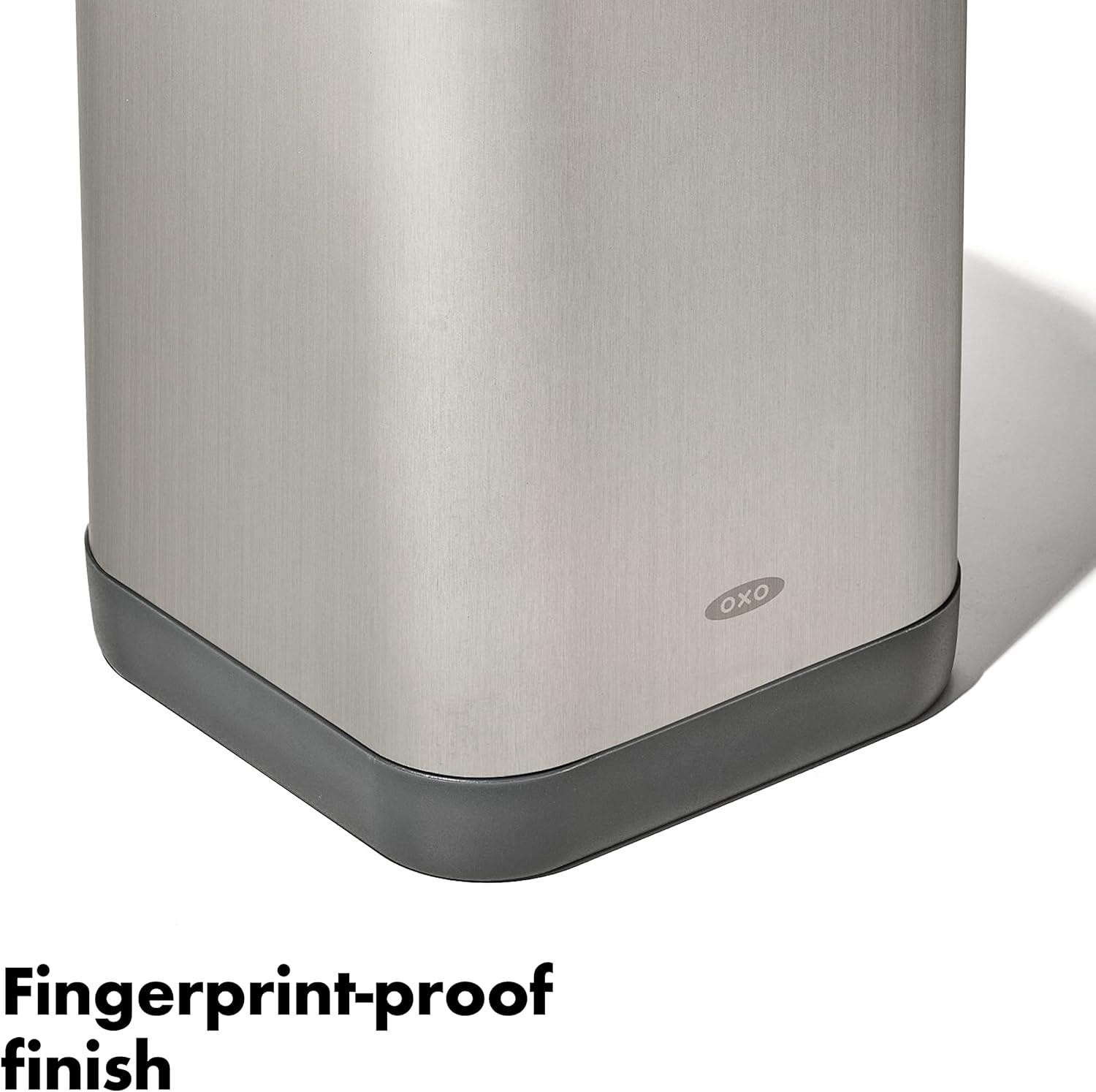 Keep your trusty kitchen tool close at hand—and far from that overstuffed drawer–with OXO's Good Grips Adjustable Stainless Steel Holder. With a capacity designed to hold up to 18 utensils, the stars of this Utensil Holder are the adjustable, removable dividers. The dividers are engineered to hinge in order to create platforms for shorter tools—that way all of your tools, no matter what size, are within easy reach. The dividers can be configured for a custom fit for your needs. The Holder has tall walls to keep all tools upright and has a fingerprint-proof stainless steel finish to keep the Holder looking tidy.