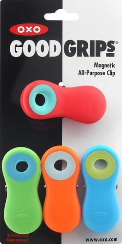OXO Good Grips All-Purpose Magnetic Clips – 4 Pc Assorted(Red/Yellow/Navy/Light Blue)