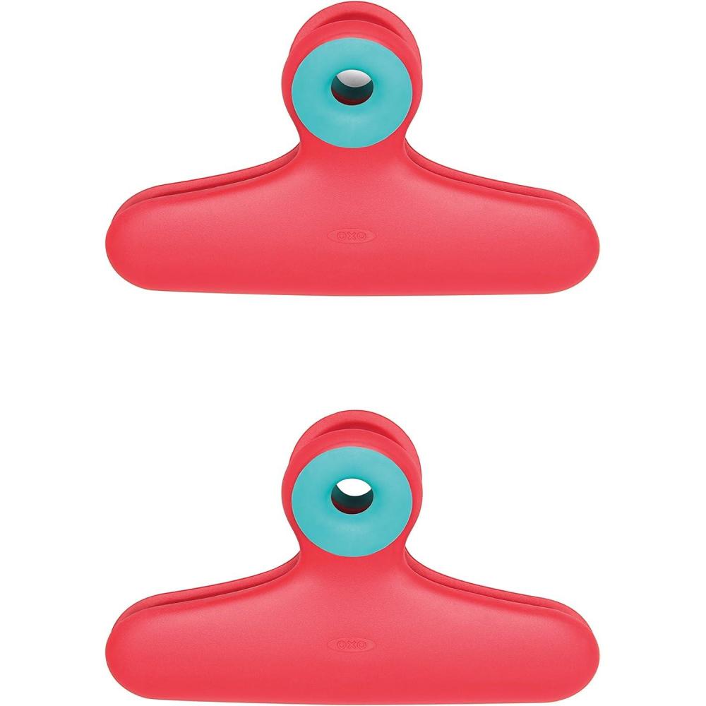 OXO's multi-purpose Clips will help you organize your home, office, garage or workroom. Our Clips feature sturdy plastic construction and soft, comfortable grips. Non-slip mouths hold items securely and hanging holes allow the clips to be hung on a nail, hook, peg or line. The Bag Clips feature an extra-wide mouth for sealing large-size or bulk-size bags. The Bag Clip can also be used for clipping books or magazines open for hands-free reading.