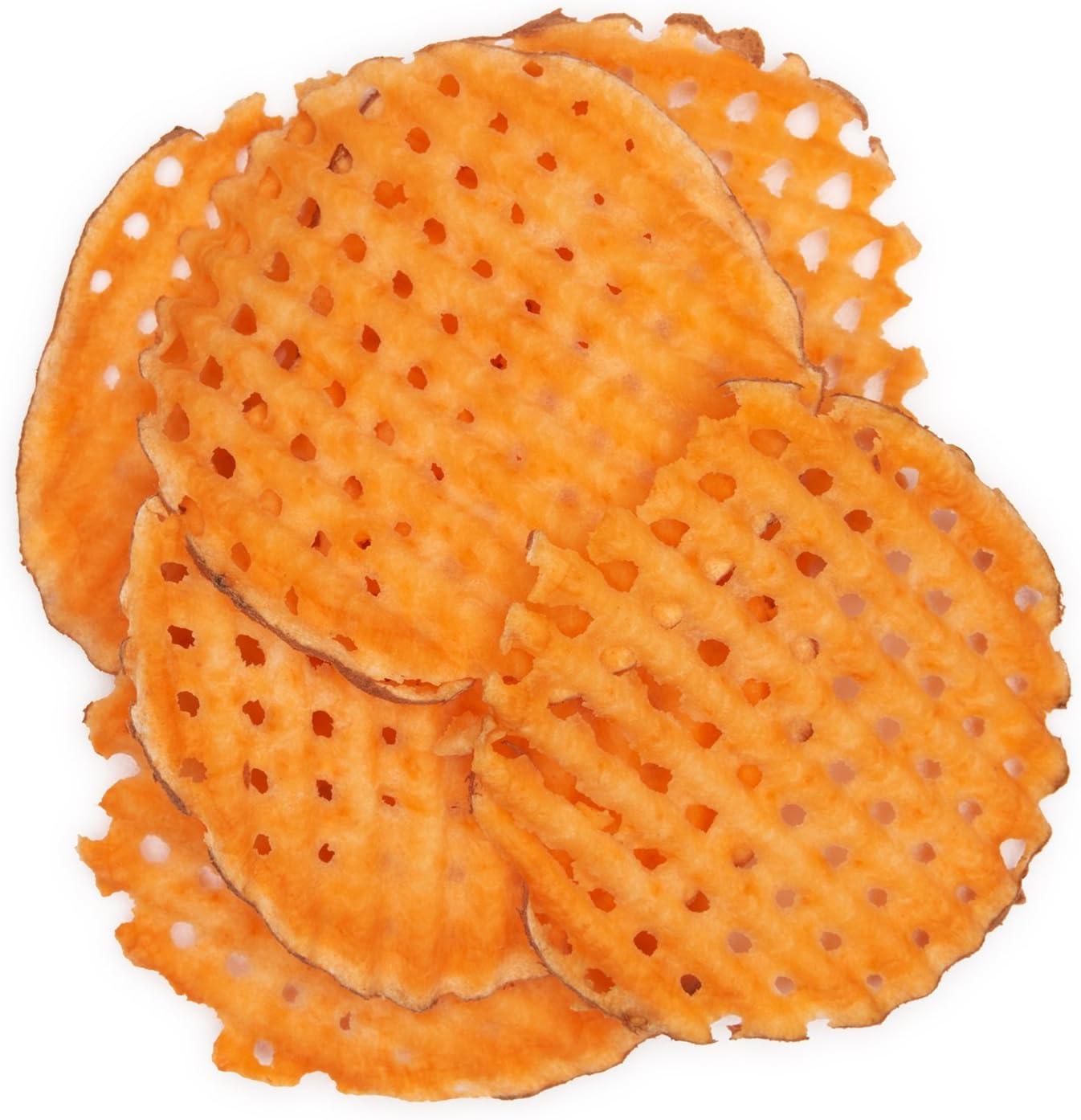 Two-sided blade can create straight slices or crinkle/waffle cuts, plus integrated julienne and French fry blades