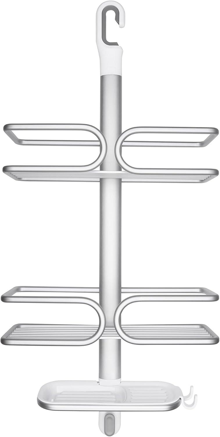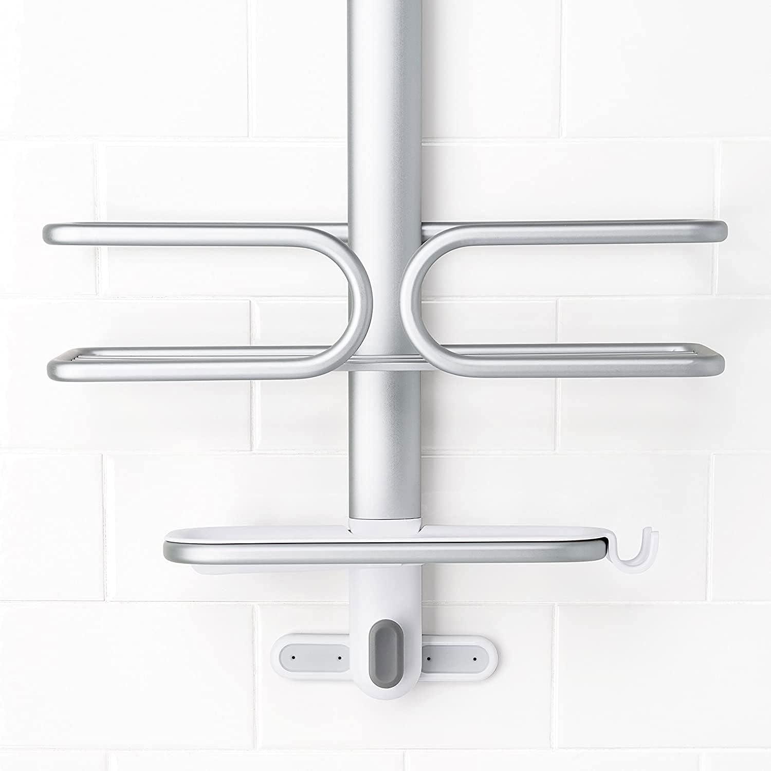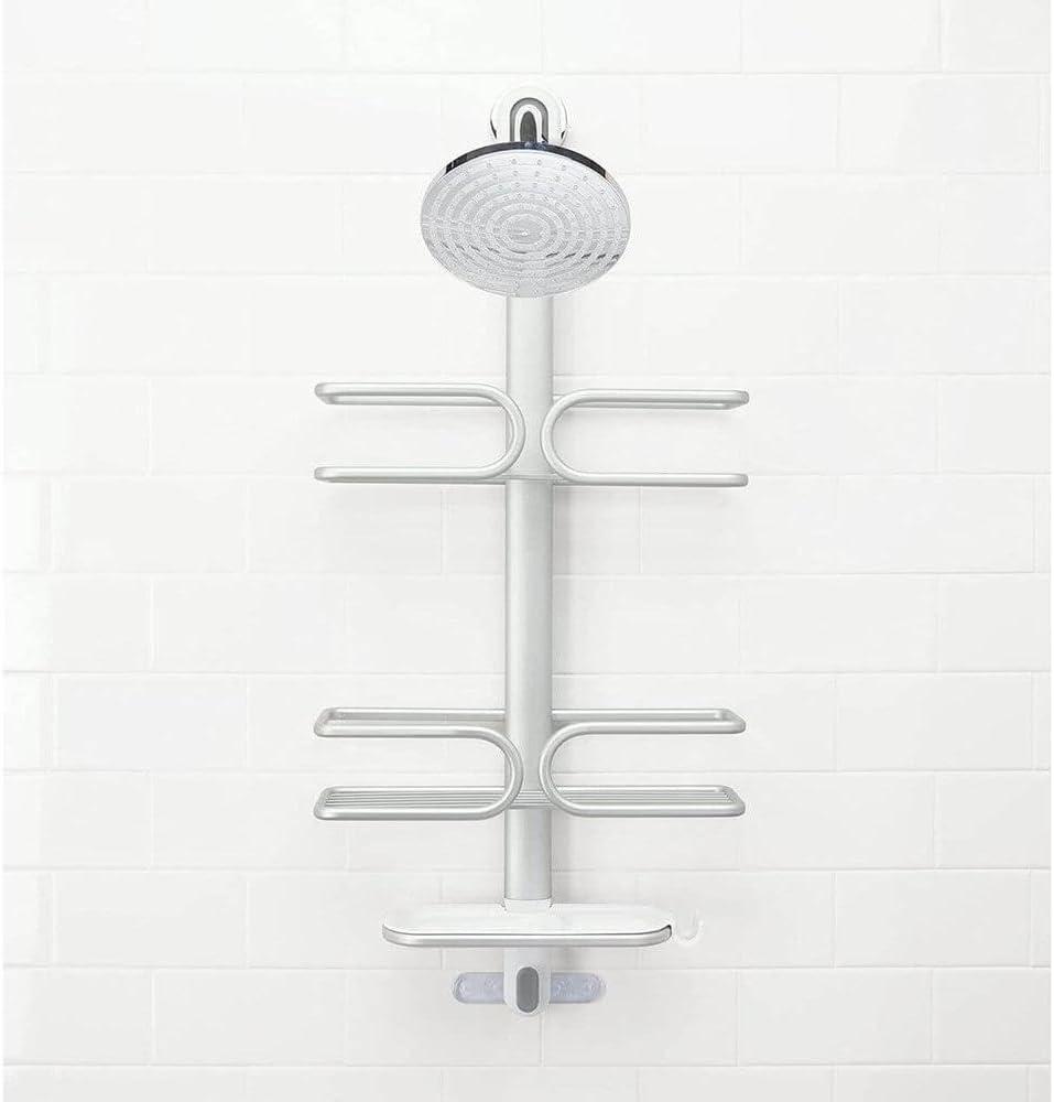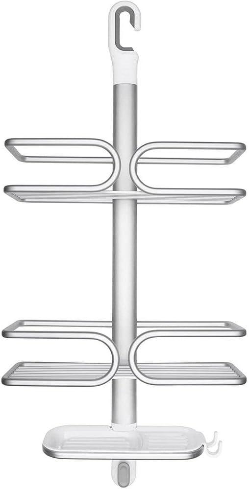 Maximize shower storage in tight spaces with the rustproof (really!) OXO Good Grips Aluminum Compact Shower Caddy. The anodized aluminum frame and shelf provide structure and keep even deluxe-sized shower essentials contained without bending. Tool-free installation is simple, just place the non-slip hook over your shower head pipe and pull down, then use the suction cups to secure the Caddy to the wall for extra stability. With thoughtful details like a large soap dish with removable tray, built-in razor holder and hook to hold loofahs, mesh scrubbies and more, this Shower Caddy will keep you – and your shower – squeaky clean and super neat.