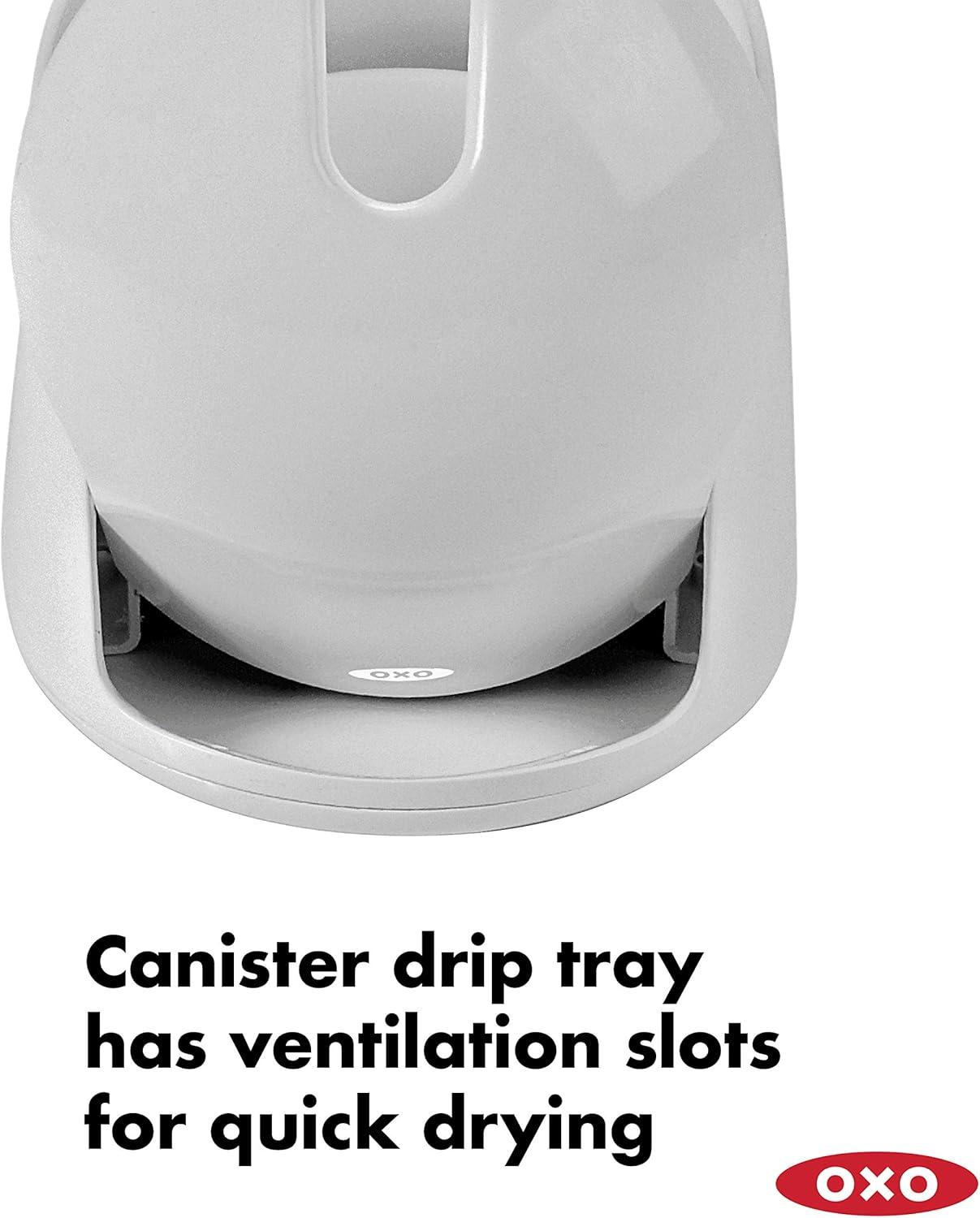 Canister drip tray features ventilation slots that allow water to quickly evaporate