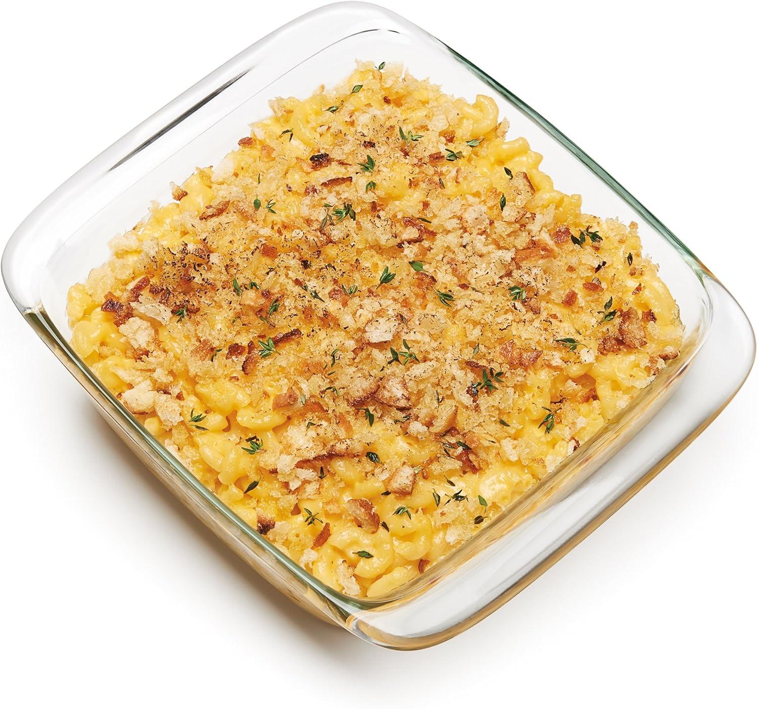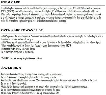 The OXO Good Grips Covered Pie Dish is made of borosilicate glass to allow transferring from oven or microwave to freezer. Comes complete with a translucent, BPA-free lid to help protect contents and prevent spilling when storing or on-the-go.