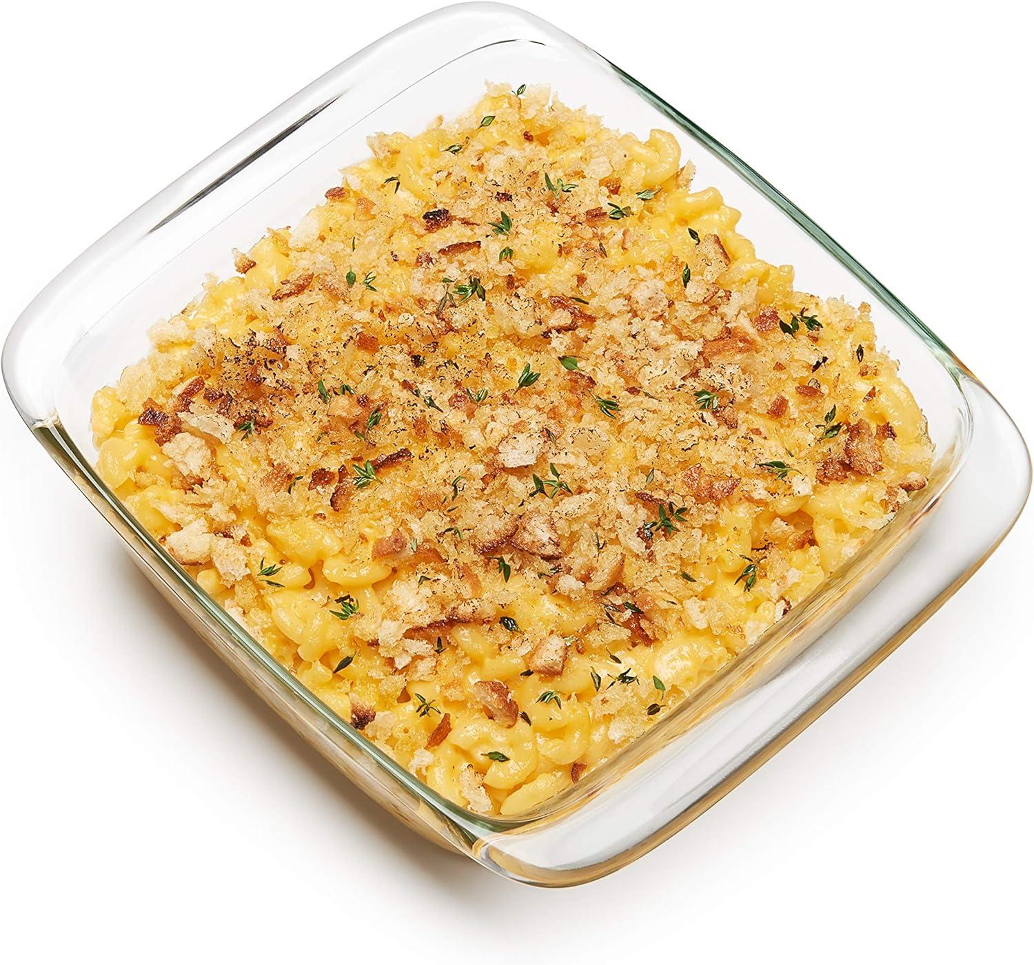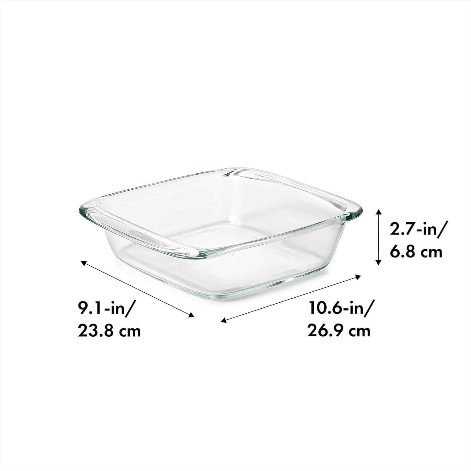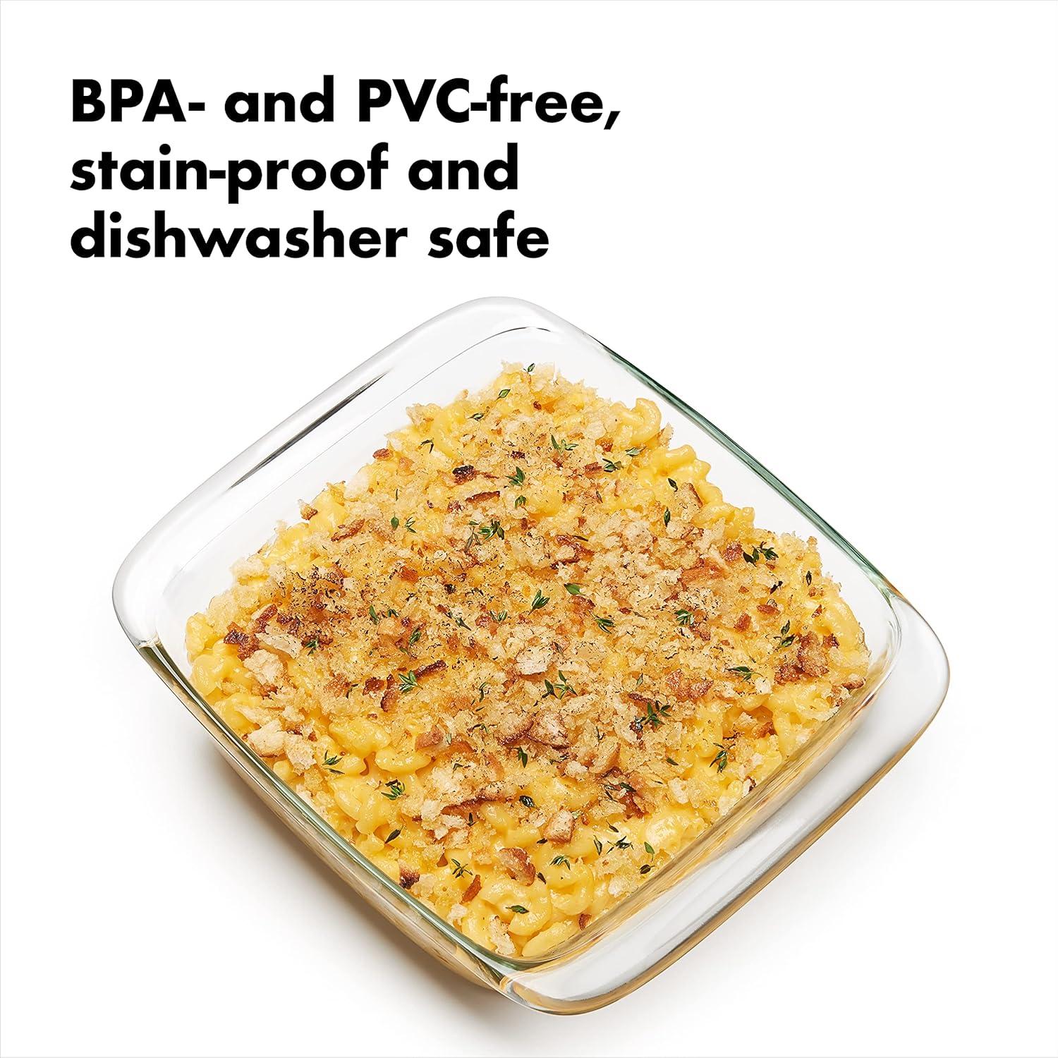 The OXO Good Grips Covered Pie Dish is made of borosilicate glass to allow transferring from oven or microwave to freezer. Comes complete with a translucent, BPA-free lid to help protect contents and prevent spilling when storing or on-the-go.