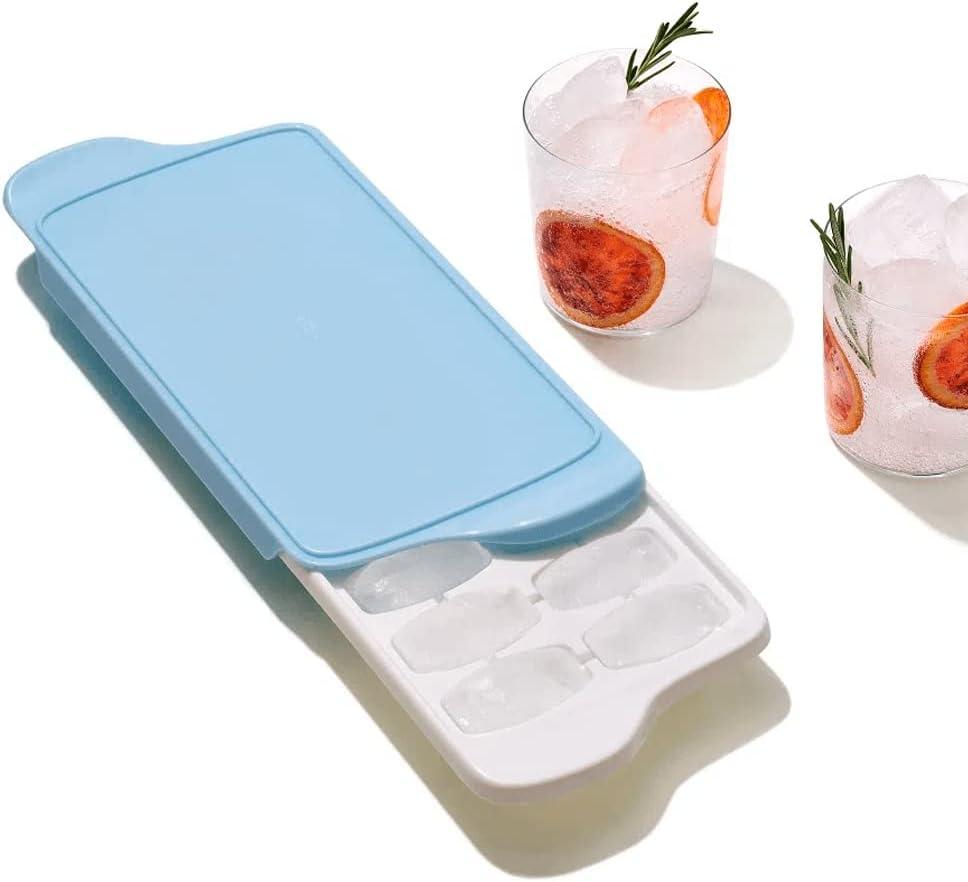 Take the fuss out of the freezer with the OXO Good Grips Ice Cube Tray. Its patented sliding lid lets you decide exactly how many cubes you need, keeping the rest secure as you remove them. This cover works double-duty, blocking ice from absorbing freezer odor, and allowing for safe stacking. Dispensing ice cubes is hassle-free, since the Tray’s rounded cube shape is designed for easy release. Top-rack dishwasher safe.