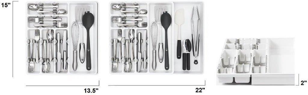 Expands from 15 1/2to 22 ⅛to fit kitchen drawers