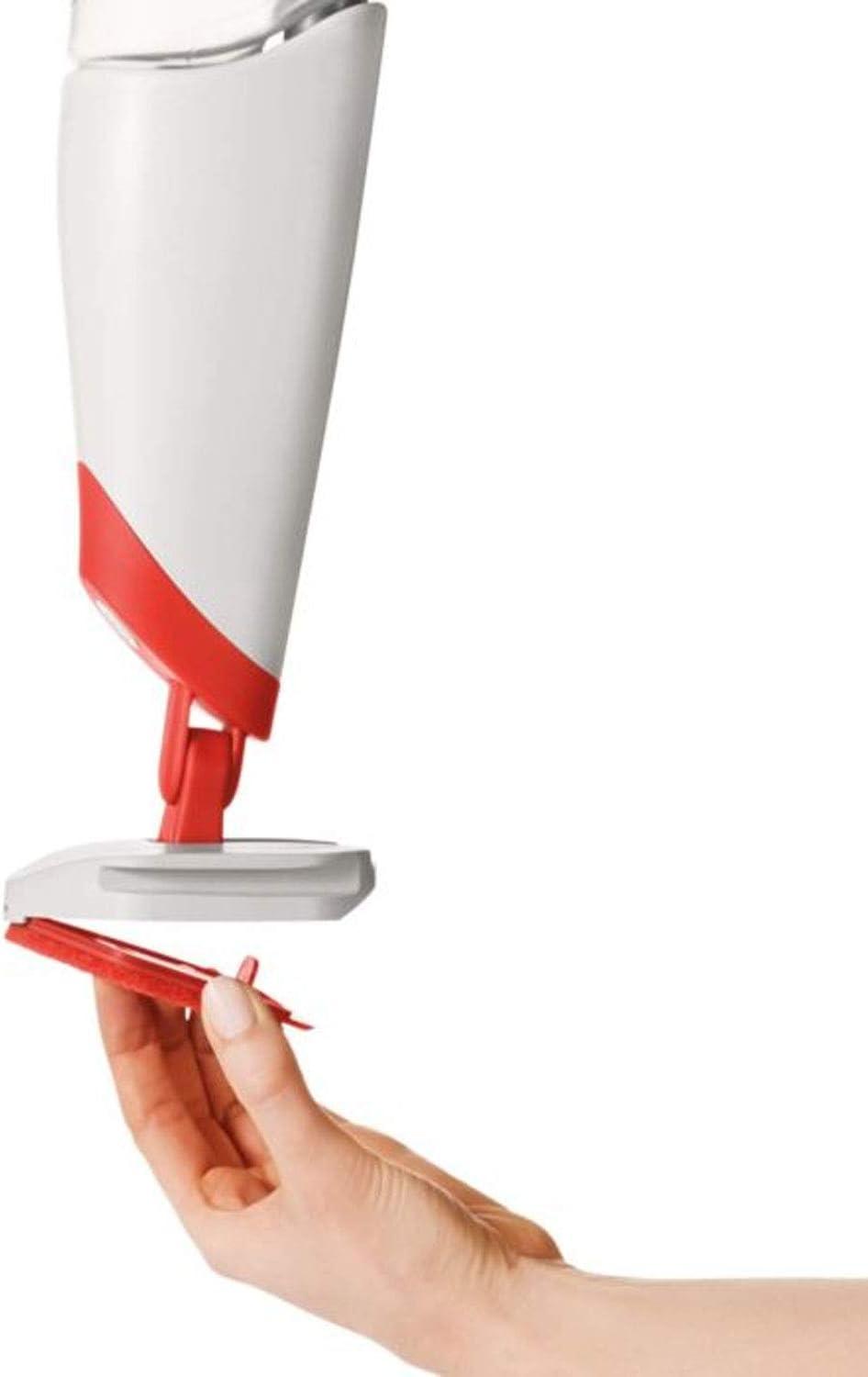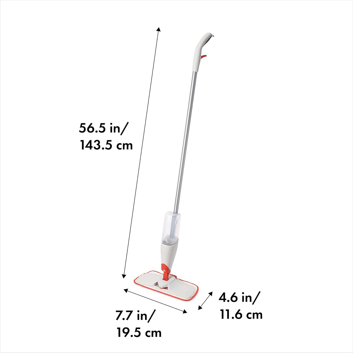 OXO microfiber spray mop with slide-out scrubber makes for a seamless transition between mopping and spot-cleaning. The large microfiber head of the mop attracts and traps dirt and dust, and it features a detachable scrubber that slides out when you step on the pedal for quick and easy spot-cleaning. The contoured, comfortable handle has a reusable bottle with clear measurement markings which is perfect for filling with your own solution. The easy-to-use squeeze trigger on the handle dispenses liquid directly in front of the mop for easy floor cleaning.