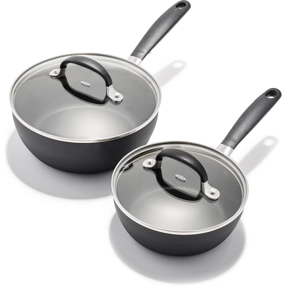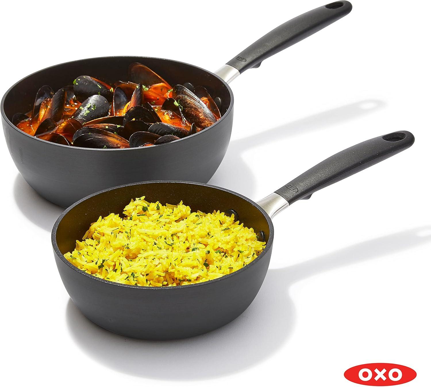 OXO Good Grips Nonstick Black Grill Pan, 11″(1QT and 2QT Saucepan Set)