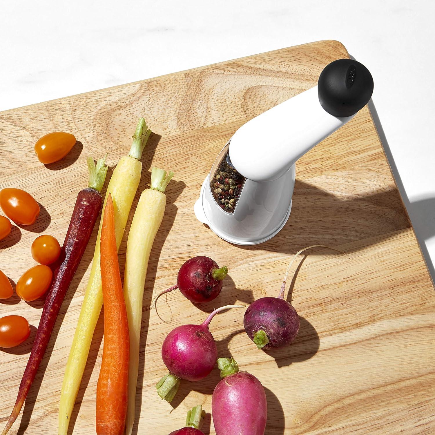 With its long turning arm and comfortable, non-slip handle, the Pepper Mill takes the labor out of grinding. The ceramic grinding mechanism adjusts from fine to coarse. A clear door opens wide for easy refilling, and the base keeps countertops clean.