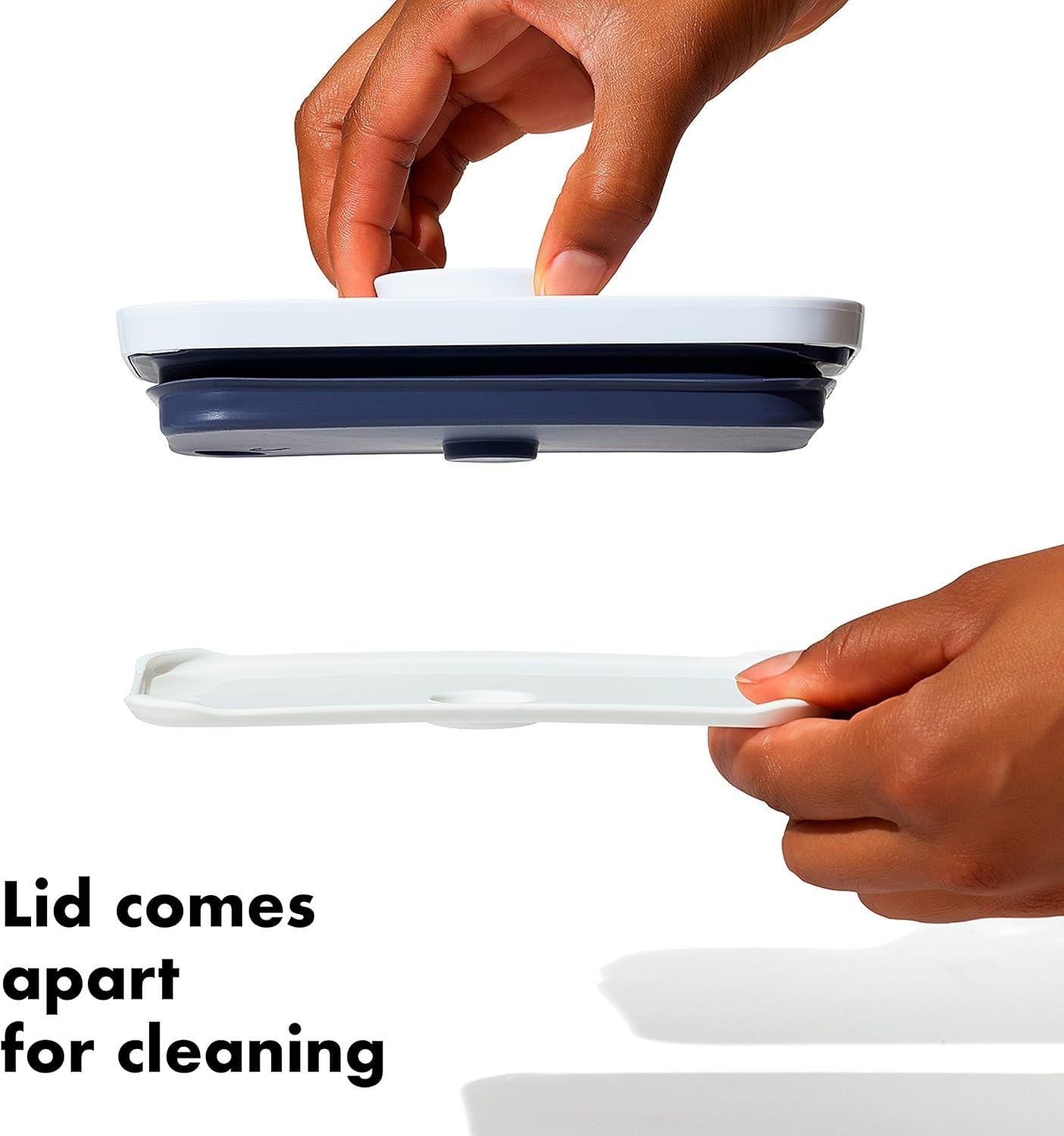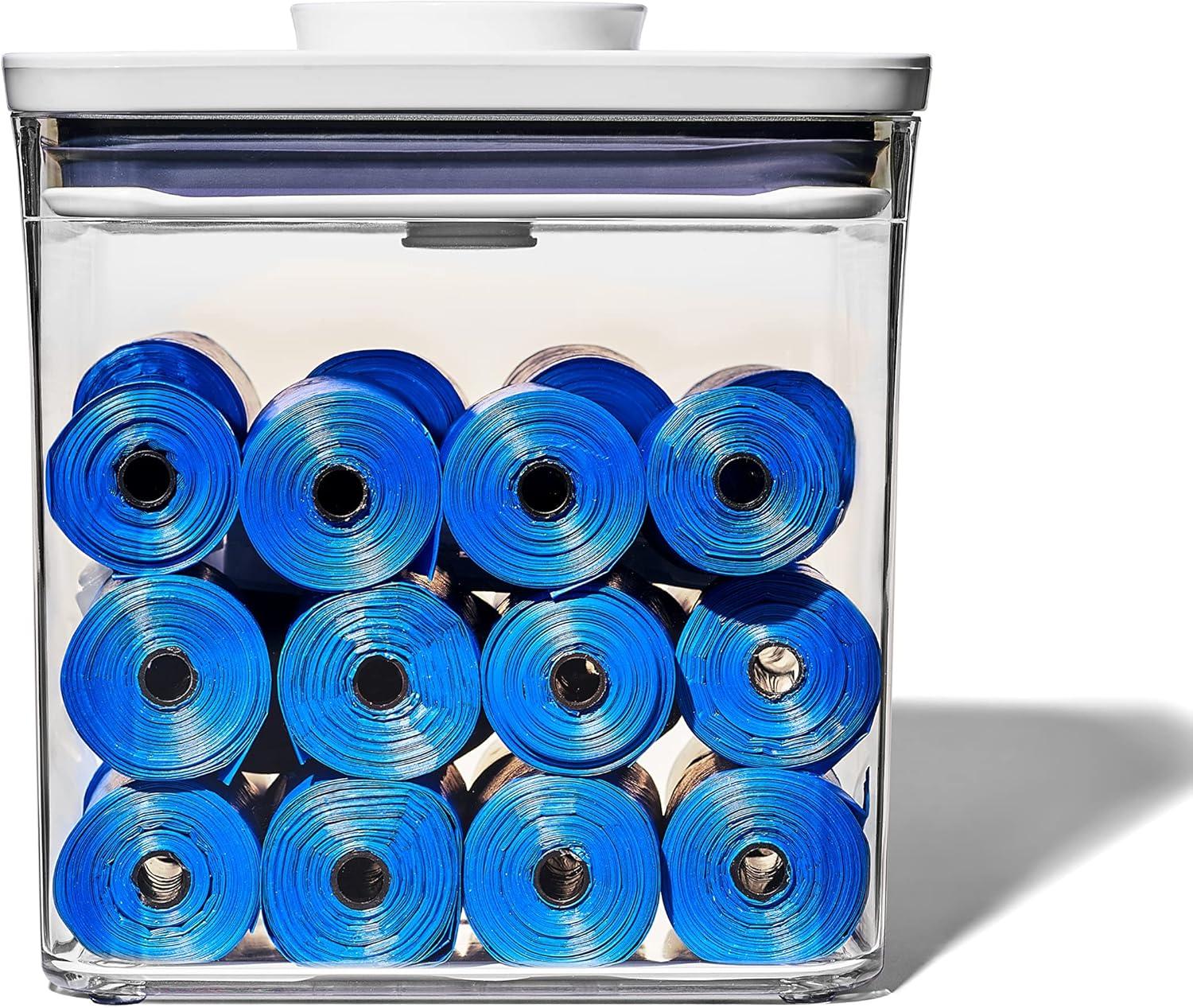 Instead of storing a bag of pet food in the garage (where pests can get to it) or the floor of your pantry (where pieces are bound to fall out and make a mess), consider the OXO 6.0 Qt/5.7 L Pet POP Container. It can easily hold up to 6.5 pounds of dog food or 4.5 pounds of cat food. The clear, square base makes for neat and streamlined storage, which means it’ll look nice on your counter or on a pantry shelf. And the lid creates an airtight seal, comes with a detachable ½ cup scoop for serving and can easily be taken apart for cleaning. For best results, always use the button to open and close. Do not carry POP Containers by the lid. Dishwasher safe.