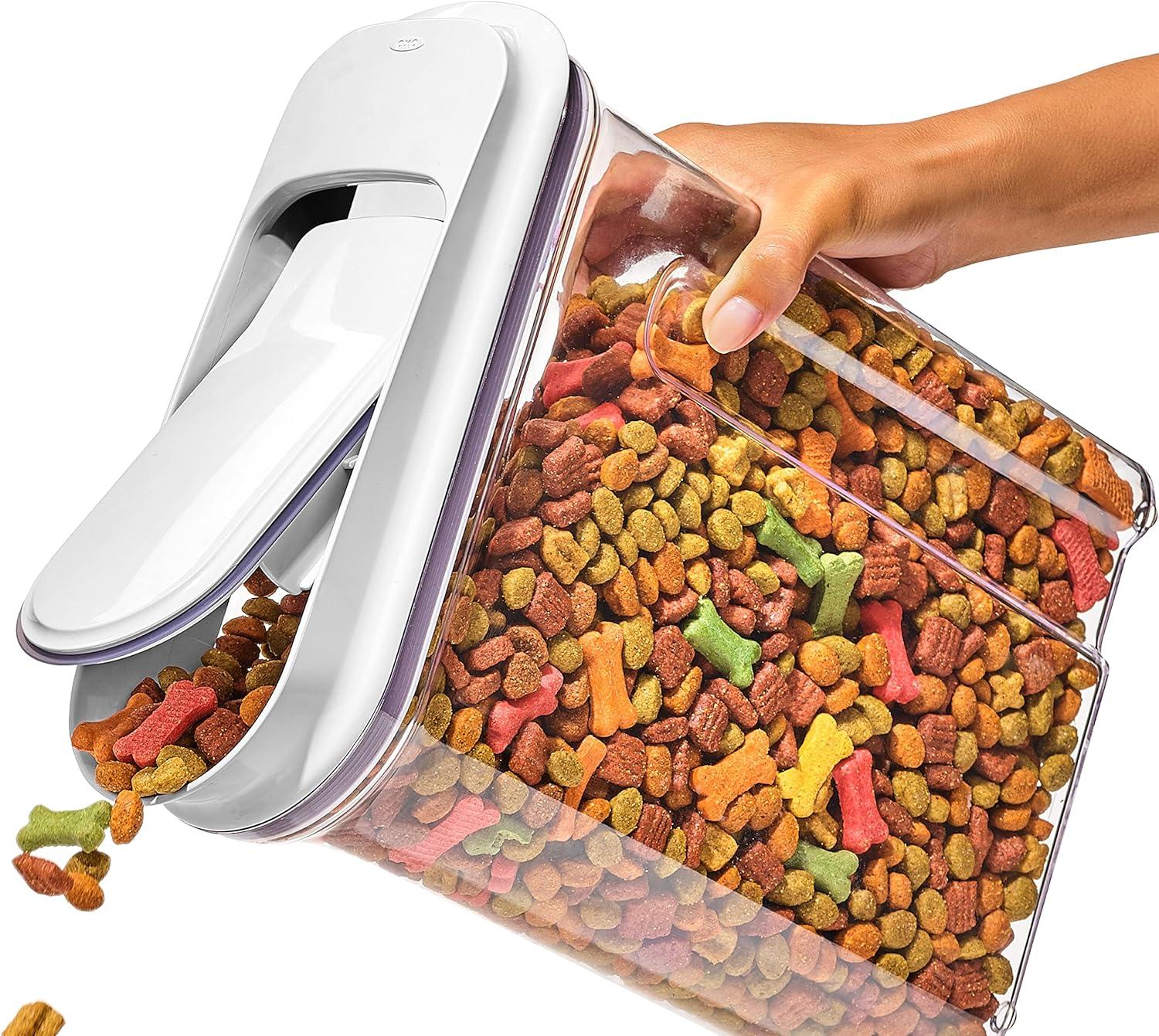 OXO Good Grips Pet POP Container – 6.0 Qt/5.7 L with Half Scoop, Ideal for up to 6.5lbs of Dog Food or 4.5lbs of Cat Food, Airtight Dog and Cat Food Storage Container, BPA Free, Clear(Pet POP 4.4 Qt)