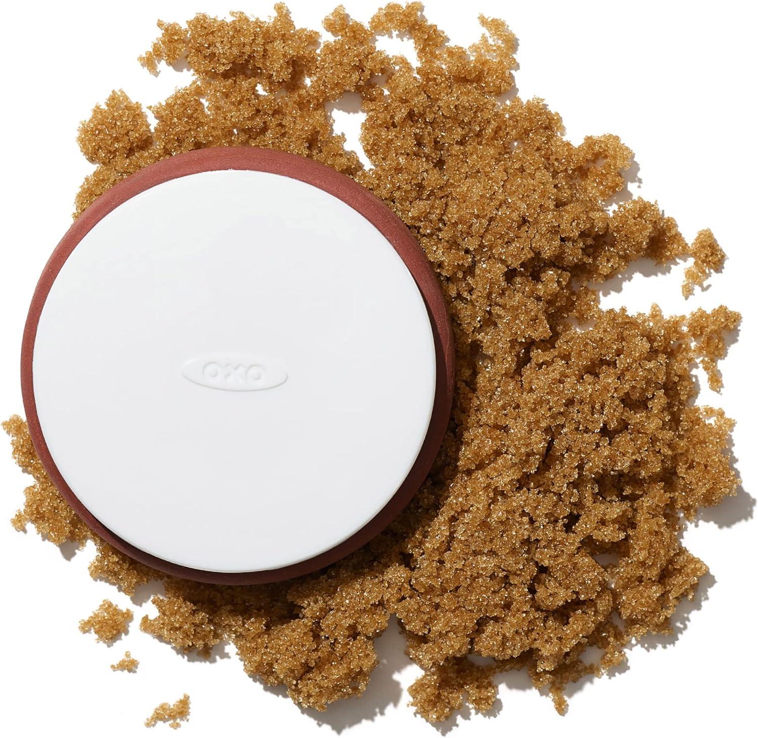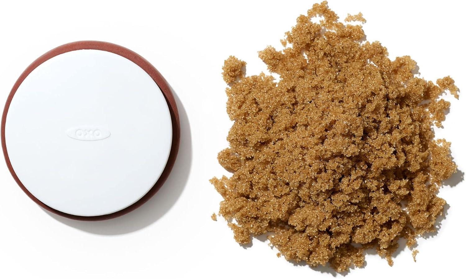The OXO POP Brown Sugar Saver is a food-safe terracotta disk that keeps brown sugar soft and fresh