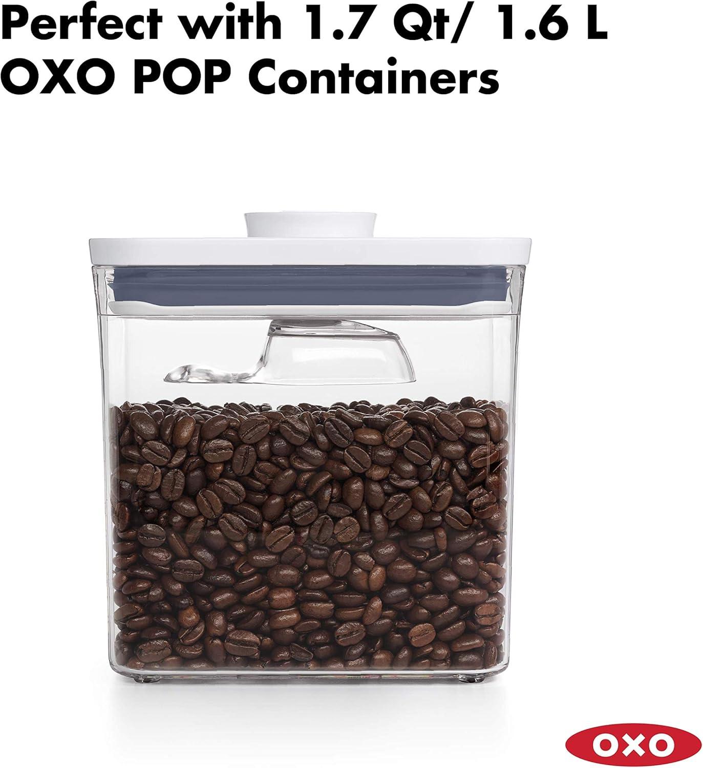 OXO Good Grips POP Accessories is a brand-new line of tools designed to help you make the most of POP Containers. The POP Coffee Scoop’s 2 T / 30 mL capacity is perfect for measuring or portioning coffee beans or grinds. Like all POP Accessories, it secures neatly to the underside of new POP Container lids. Recommended for use with the 1. 7 Qt / 1. 6 L OXO POP Container, sized for 1 lb of coffee; also fits POP Containers with lid type: A, B, C, D. Dishwasher safe and BPA free.