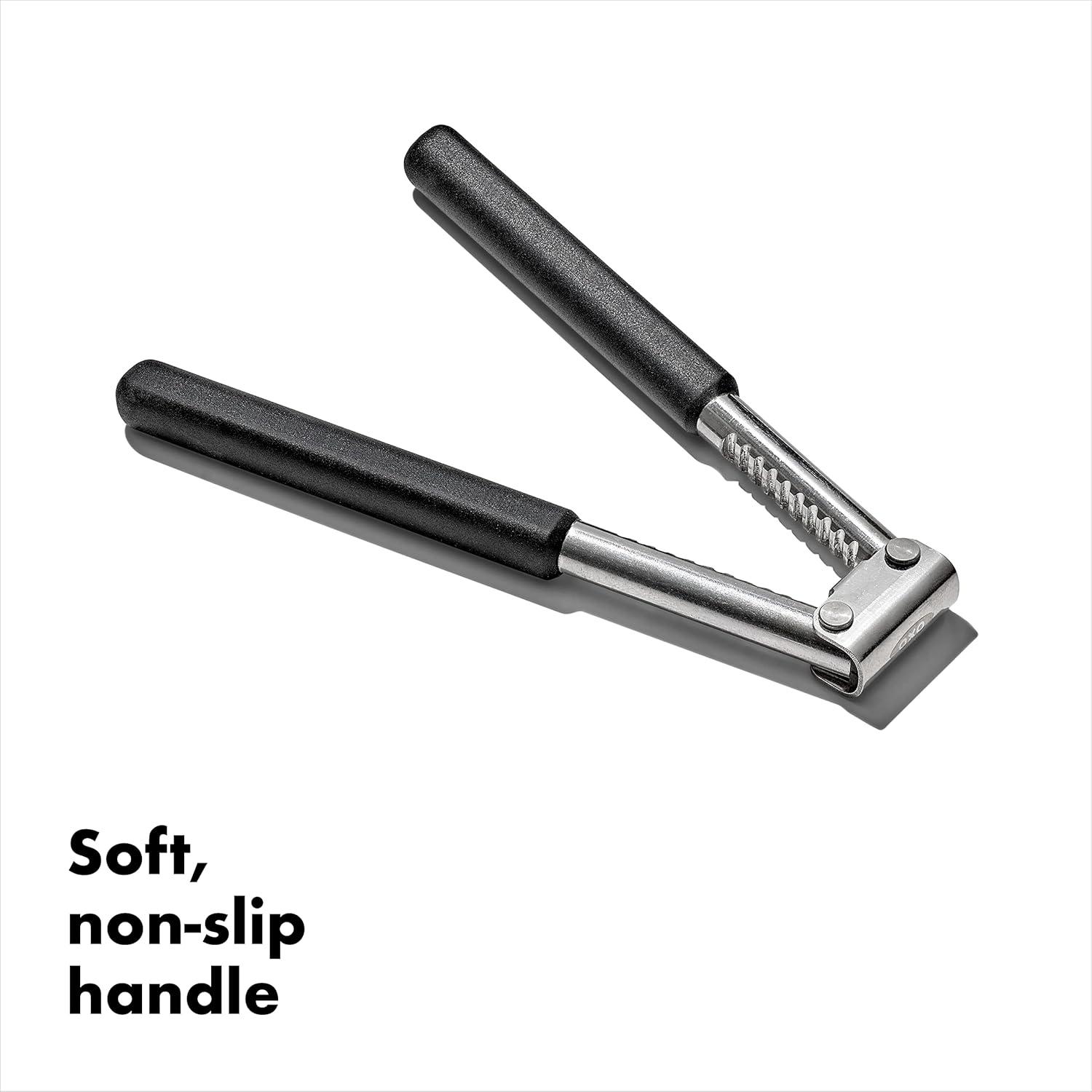 The OXO Good Grips Seafood & Nut Cracker combines classic design and modern comfort for cracking seafood and nuts with ease. The ridged opening securely fits claws and nuts of any size, while the narrow center is designed to pinch even narrow crab legs. A comfortable non-slip handle absorbs the squeezing pressure and provides a soft grip, even when your hands are wet. So whether you need to crack a big lobster claw, a thin crab leg, a big walnut, or a small almond, this tool has you covered. Dishwasher safe.