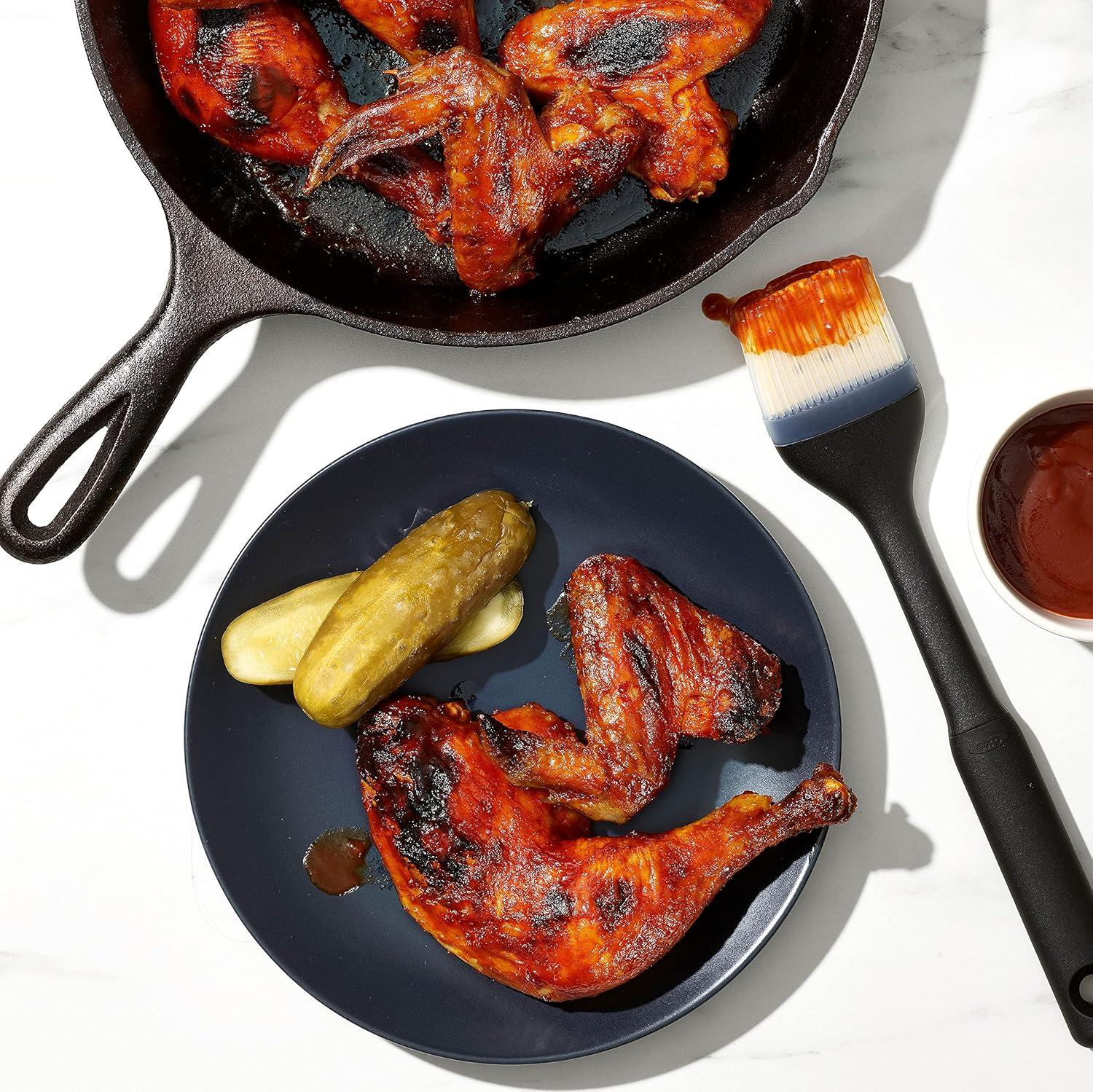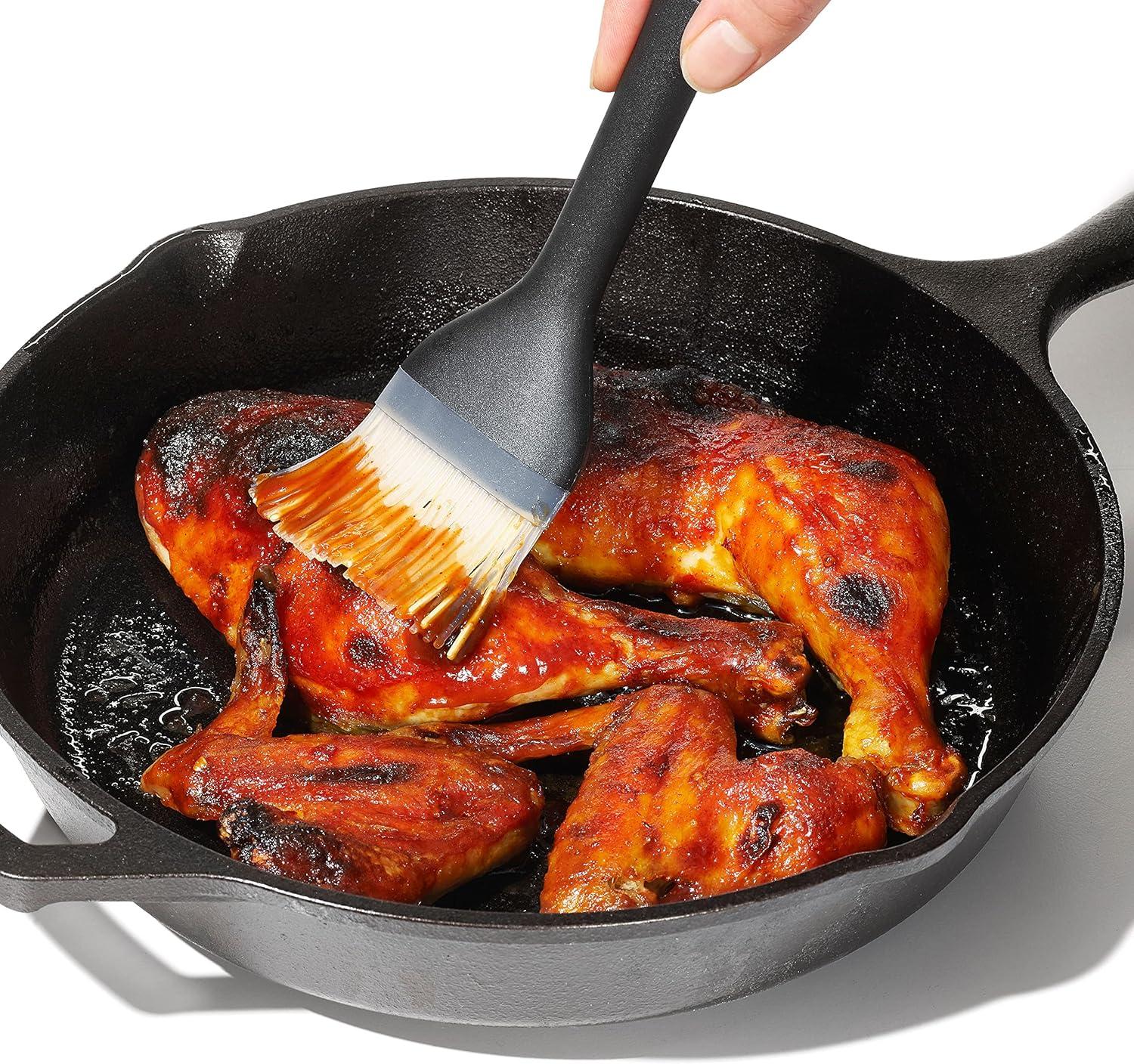 The OXO Good Grips Silicone Pastry Brush helps you create bakery-level pastries. The heat-resistant silicone bristles are easy to clean: They won’t retain odors, shred or clump. Our patented center-hole bristles feature a gap that holds liquids for efficiently applying egg washes and syrups. The tapered design of the outer bristles lets you brush melted butter with ease—even over thin and delicate dough. The angled brush head keeps bristles elevated above countertops to avoid messes. Dishwasher safe.