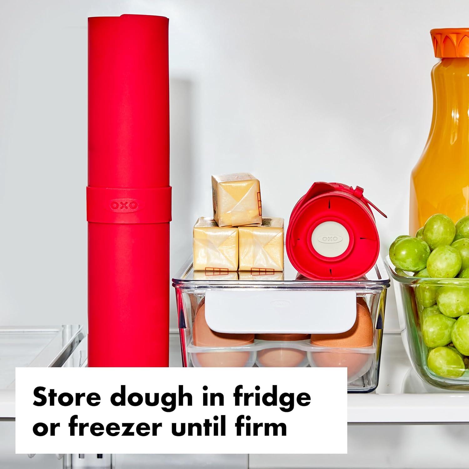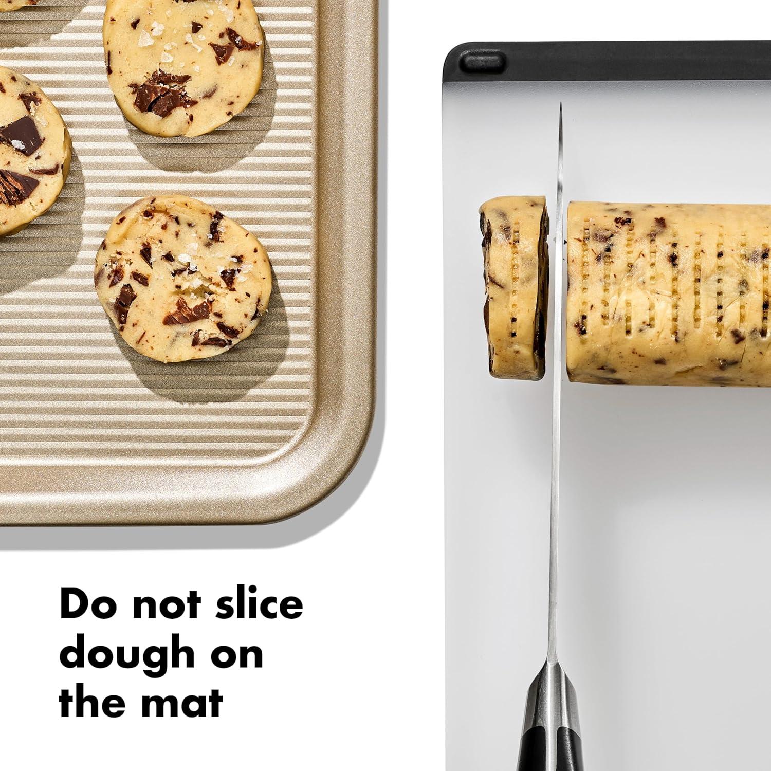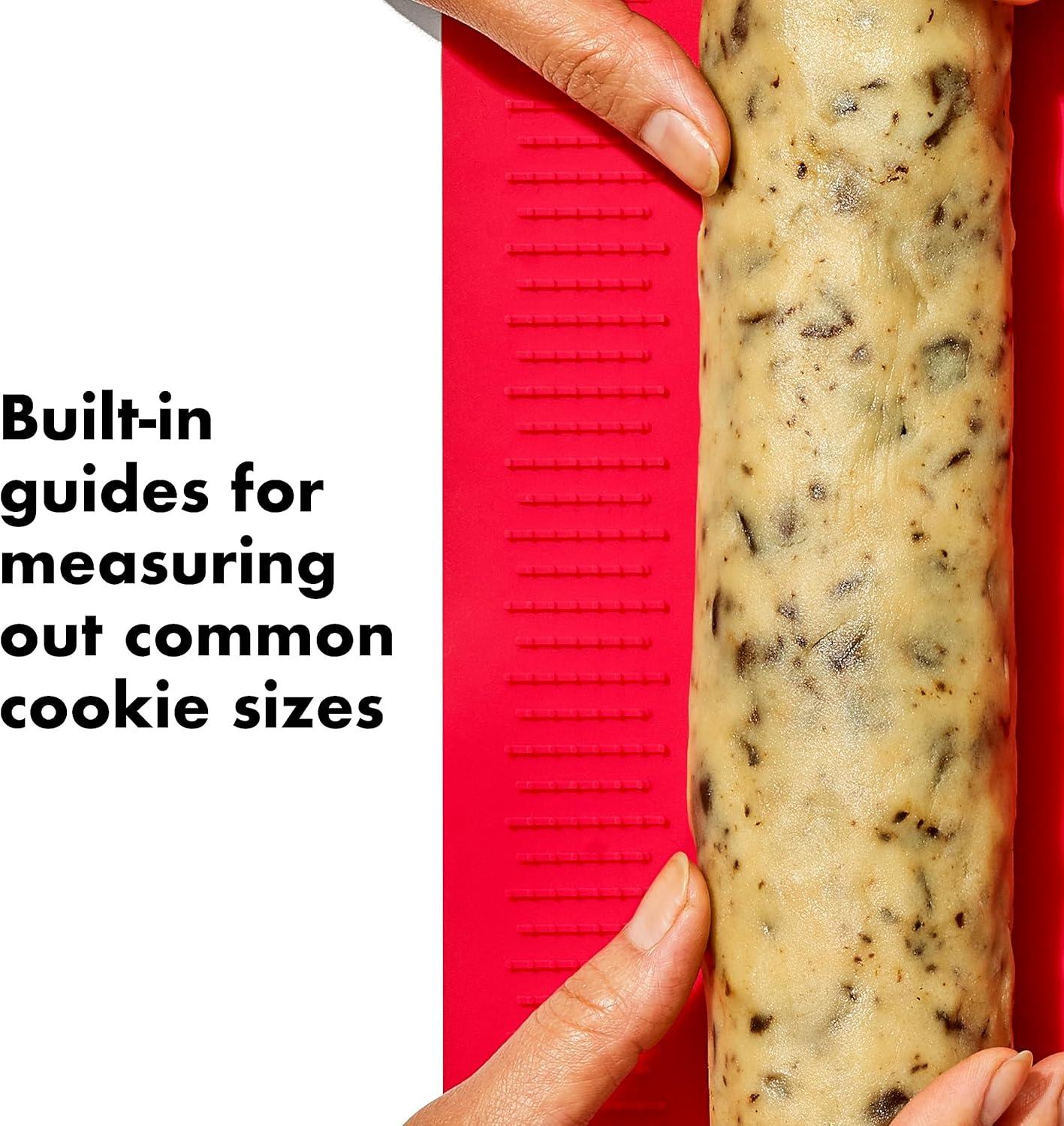 Slice-and-bake cookies – also known as icebox bookies – are beloved by bakers, and The OXO Slice & Bake Cookie Helper is here to make the prep process even easier. The set of two handy silicone mats is perfect for splitting a recipe, and helps you shape, pre-measure and store cookie dough with ease. Once your dough is formed, our mat does the rest—simply lay down your dough and shape into a log, replacing wasteful single-use plastic wrap. The end caps slide right on to protect your dough and the straps keep it secured and rolled up while it chills in the refrigerator or freezer. Once the dough is chilled, rest the log on the side with our raised markings that will gently perforate your dough. Then move your dough to your cutting board (never slice on the Mat) and use the perforated guides to slice uniform cookies. The built-in guides allow you to easily differentiate between 1.5-inch, 1.75-inch or 2-inch diameter cookies. Only want a few cookies at once? No problem, just return the rest of your dough log to the mat and roll it right back up.