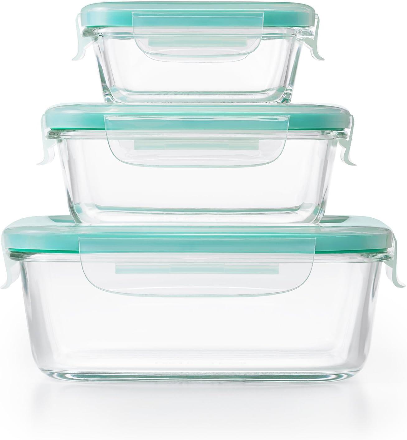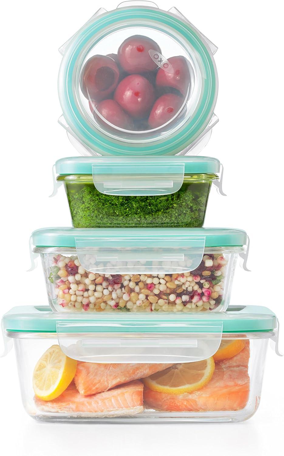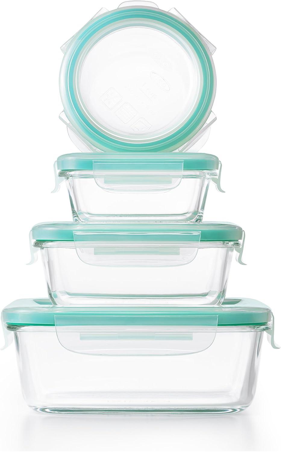 From taking meals on the go to storing them for later, OXO good grips smart seal glass airtight food storage containers are the smart way to keep food fresh. Four locking tabs and a removable silicone gasket work together to create a truly spill proof seal – for no leaks and no worries. Made from naturally BPA-free borosilicate glass, these durable containers are built to go from freezer to oven (or microwave!) without the need to fully thaw. Dishwasher safe and stain-proof, smart seal containers stack conveniently in your fridge or freezer, and neatly nest in your cabinet. The elegant design moves seamlessly between the kitchen to your table.