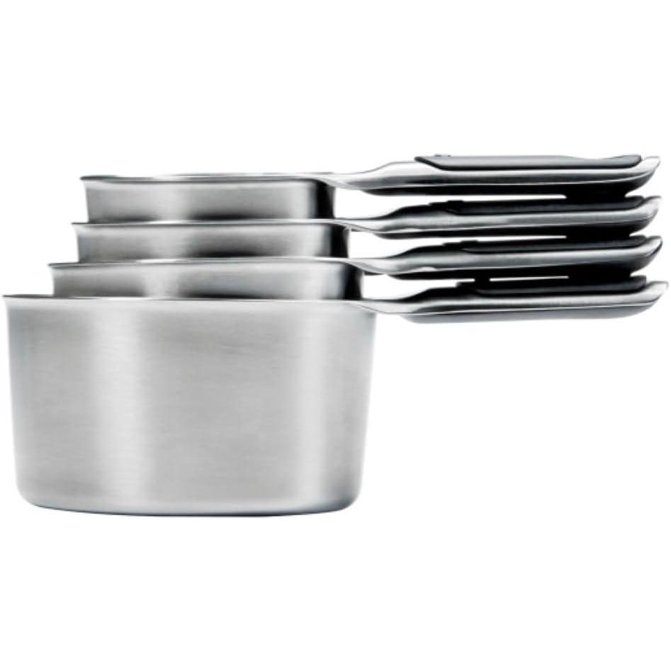 The OXO Good Grips Stainless Steel Measuring Cups and Spoon Set is an elegant yet functional measuring solution. The unique magnetic feature allows you to easily remove one Cup or Spoon at a time. This feature also keeps the Cups and Spoons neatly stacked together for storage. The sturdy, Stainless Steel Measuring Cups and Spoons are designed to make leveling ingredients easy for greater accuracy. The soft, comfortable, non-slip handles feature permanent, etched measurement markings. Set includes ¼ tsp, ½ tsp, 1 tsp and 1 T Spoons, ¼ Cup, 1/3 Cup, ½ Cup and 1 Cup Measuring Cups.