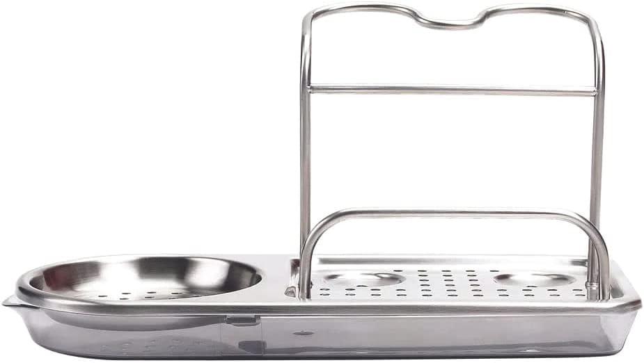 The Stainless Steel Sink Organizer features separate areas for long-handled brushes, palm brushes, pump dispensers and a sponge. The slim design fits in tight spaces and won't take up valuable counter space. The perforated base keeps sponges and tools dry. The drip tray is removable for cleaning.