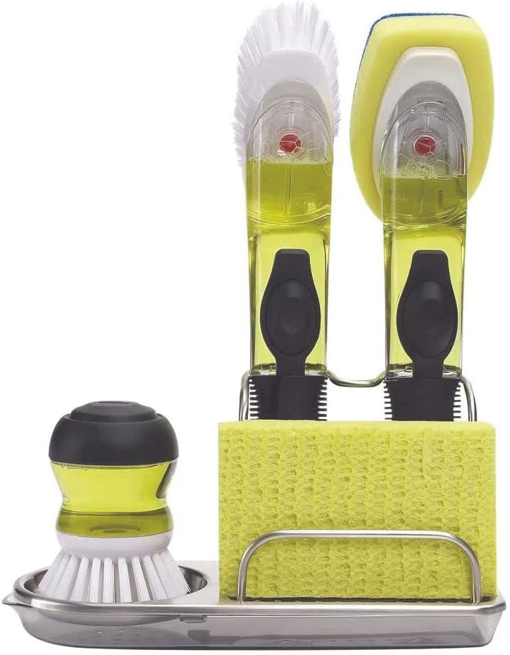 Separate areas for palm brushes, pump dispensers, sponges & more