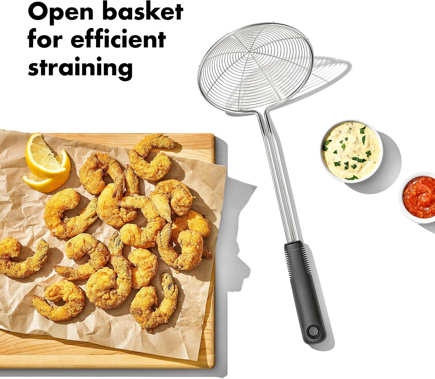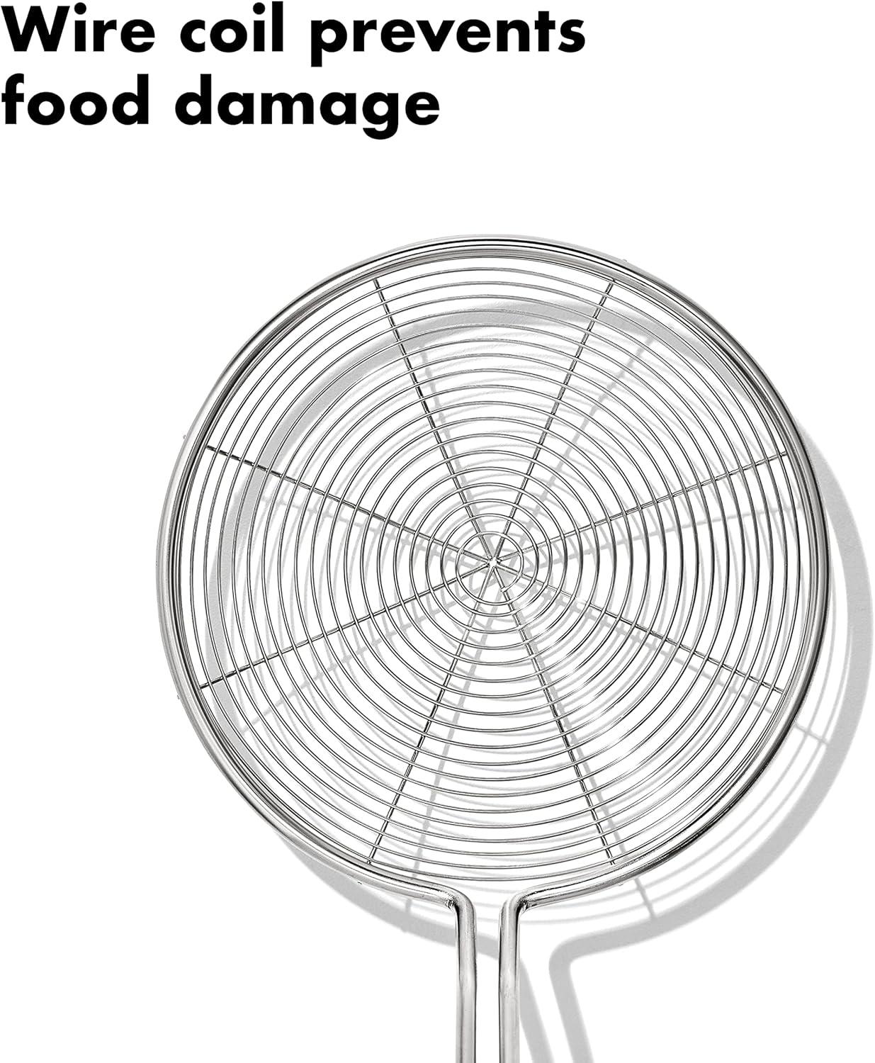 Whether you’re boiling, blanching or frying the OXO Good Grips Scoop & Strain Skimmer is the perfect tool to remove pasta, vegetables and pan or deep-fried foods while leaving all liquid behind. Featuring a wire coil design that ensures even the most delicate of foods won’t be damaged, the Skimmer’s deep, open basket is constructed for safe and efficient straining. An upgraded longer, angled handle and soft, non-slip grip enhance the Skimmer’s safety by keeping hands far away from hot oil or water.