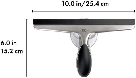 The OXO Good Grips Stainless Steel Squeegee quickly clears water from shower doors, walls, mirrors and tiled surfaces. The flexible blade adapts to contours for streak-free drying and has a non-slip handle for comfort and control when wet. This slim, lightweight tool made from durable stainless steel hangs conveniently from the included suction holder. Also great for car windows, marble countertops, and tiled surfaces