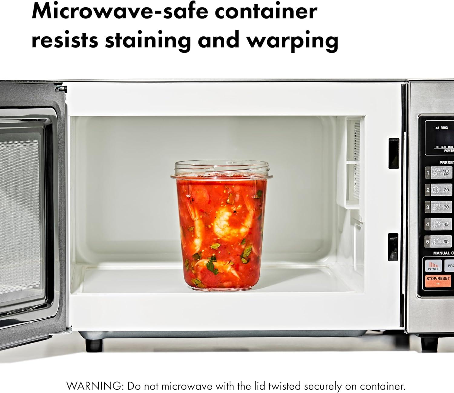 The OXO Good Grips Twist & Stack Container 20-ounce 2-pack is the long-lasting leakproof, stain-resistant storage you’ve been waiting for. These durable, leakproof, stain-resistant containers are perfectly sized for any task from meal prep to storing leftovers to taking food on-the-go. They are uniquely stackable and storable food containers to maximize space in the fridge or pantry – lids stack neatly on top of one another and containers nest inside one another so clutter is eliminated. The lids are universal – they fit each container so there’s no more searching for the right fit. (Except for our five-ounce containers – those lids are smaller.) These containers feature twistable lids which have a soft touch grip, so the containers open easily and keep food intact. The gasket inside the lid ensures a leakproof seal. This is leftover storage that’s built to last – better than those deli containers or packaged food containers. These durable containers resist staining and warping – so they last for the long haul. Containers are top-rack dishwasher safe – but remove the gasket in the lid for deep cleaning. Note – don’t microwave with the lid twisted on. This 2-pack includes: two 20 oz/592 mL containers. OXO Twist & Stack Containers are available in 5-ounce, 12-ounce, 20-ounce, 32-ounce and 40-ounce sizes. BPA free, dishwasher safe, leak proof, microwave safe, freezer safe.