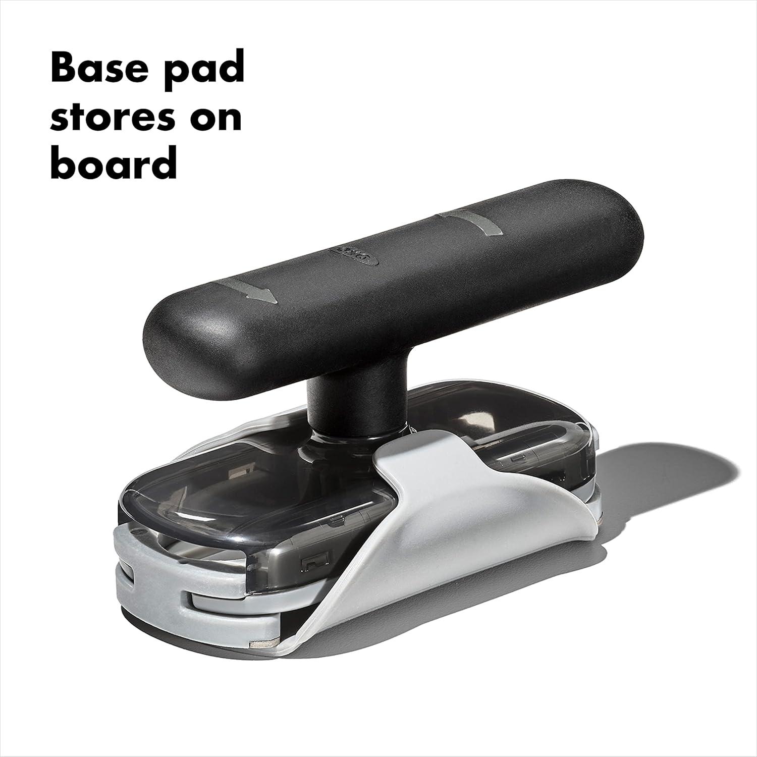 Whether you have arthritis or just need a helping hand in the kitchen, the OXO Good Grips Twisting Jar Opener with Base Pad is the perfect partner. From small bottles that are hard to get a good grip on to jars lids that require a lot of strength, the Twisting Jar Opener makes quick work of any lid with minimal effort needed. To use, just place the base pad on a flat surface in front of you and put the bottle or jar on top; the non-slip surface will help keep the jar from sliding. Ensure the Jar Opener is open, then position it on top of the jar in the middle of the lid. Holding the jar steady in one hand, use the other hand to turn the Jar Opener counterclockwise until the sharp teeth grip the lid. Continue turning the handle until the lid is open. When you’re finished, the base pad secures to the Jar Opener for convenient storage.