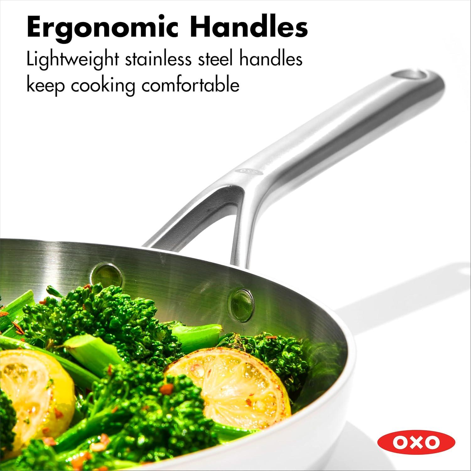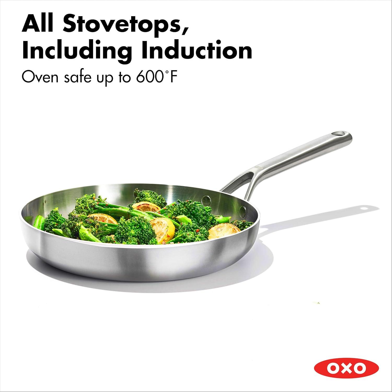 OXO Mira Tri-Ply Stainless Steel, 12" Frying Pan Skillet, Induction, Multi Clad, Dishwasher and Metal Utensil Safe(10" Frying Pan Skillet)