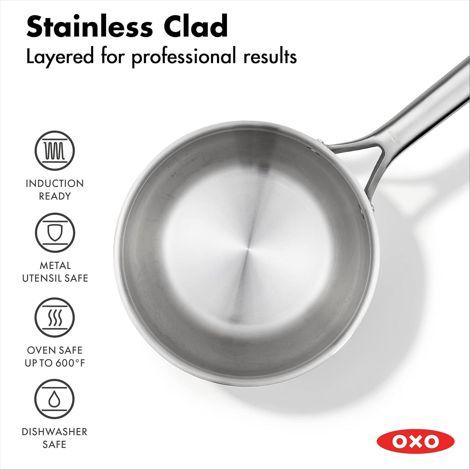 OXO Mira Tri-Ply Stainless Steel, 5QT Stock Pot with Lid, Induction, Multi Clad, Dishwasher and Metal Utensil Safe(3.57QT Chef’s Pan with Lid)