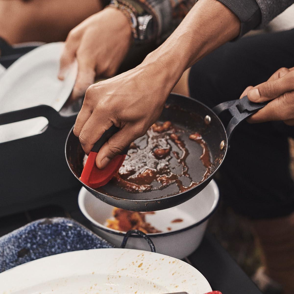 Before you wash a single dish at camp, use the OXO Outdoor 3-in-1 Squeegee & Scraper to clean off any lingering bits of food and grime. (You’ll waste less water this way!) It has a flexible silicone side (that can clear off food and wipe away water when it’s time for drying), a tough plastic scraper (that can chip away at burnt-on bits) and a stainless steel grill cleaner (with notches that hug the grates). When it’s time to pack up, the Scraper just slides into a bag. Dishwasher safe.