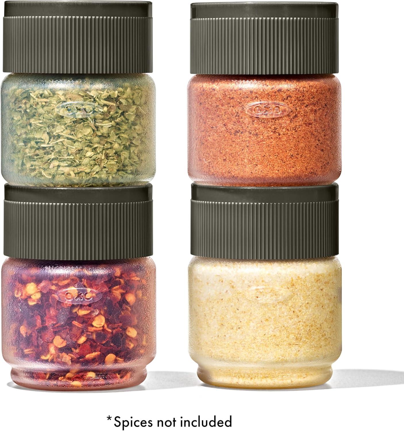 Ready for camp cooking adventures? With the OXO Outdoor 7-Piece Spice Shaker & Squeeze Bottle Set you’ll be prepared to dazzle your camping compatriots with flavorful campsite cooks. This versatile 7-piece set of spice shakers and squeeze bottles makes campsite cooking easier – with containers for spices, oils and condiments for your camp kitchen or camper kitchen. The leakproof squeeze bottles have interchangeable leakproof lids to safely transport and store bottles with condiments to and from home and the campsite. The bottles feature a thick tip for condiments and dressing and a thin tip for oil and marinades. Interchangeable spice shakers feature two shaker inserts with small holes for garlic powder, salt and cumin and two shaker inserts with large holes for red pepper flakes, oregano or dried onion. These stackable spice shakers keep camp kitchens and travel cases tidy – containers snap together for secure storage in camp kitchens. These containers are easy to clean in the dishwasher at home or by hand at the campsite. Set includes: 4 Spice Shakers, 2 3 oz Leakproof Squeeze Bottles, 1 6oz Leakproof Squeeze Bottle with interchangeable lids. OXO Outdoor – better tools to make better food in the outdoors.