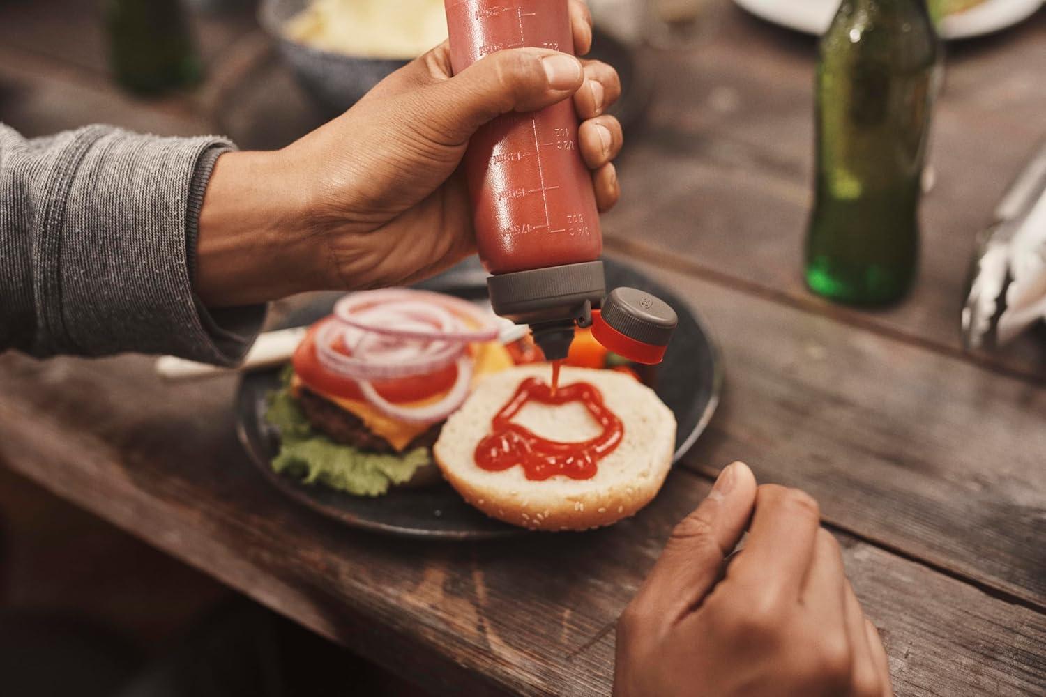 Leakproof Squeeze Bottles: Bottles have interchangeable leakproof lids to safely transport and store bottles with condiments to and from home and the campsite
