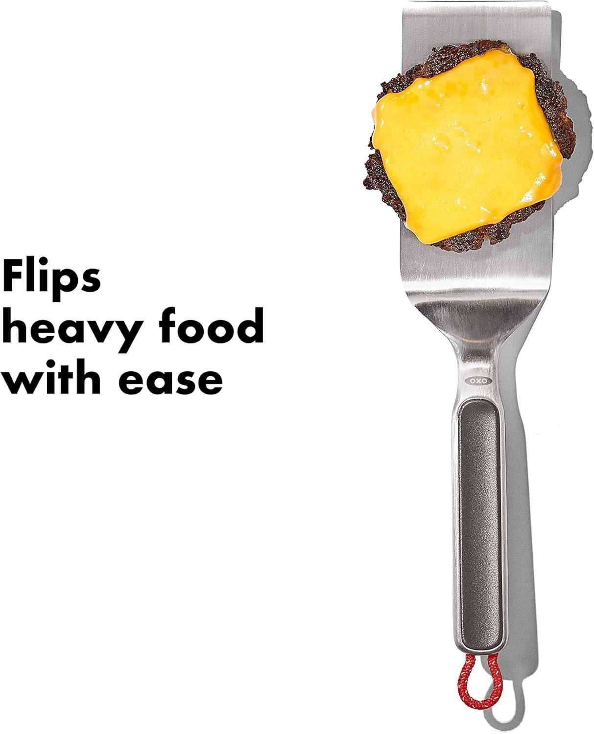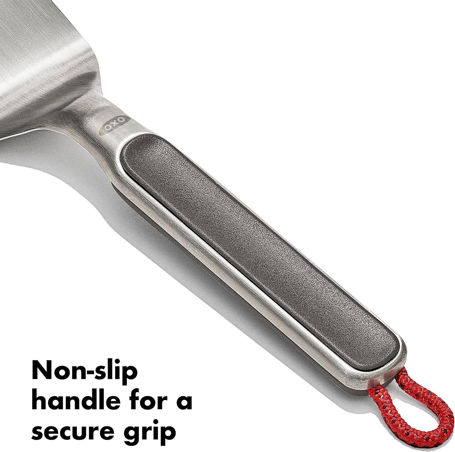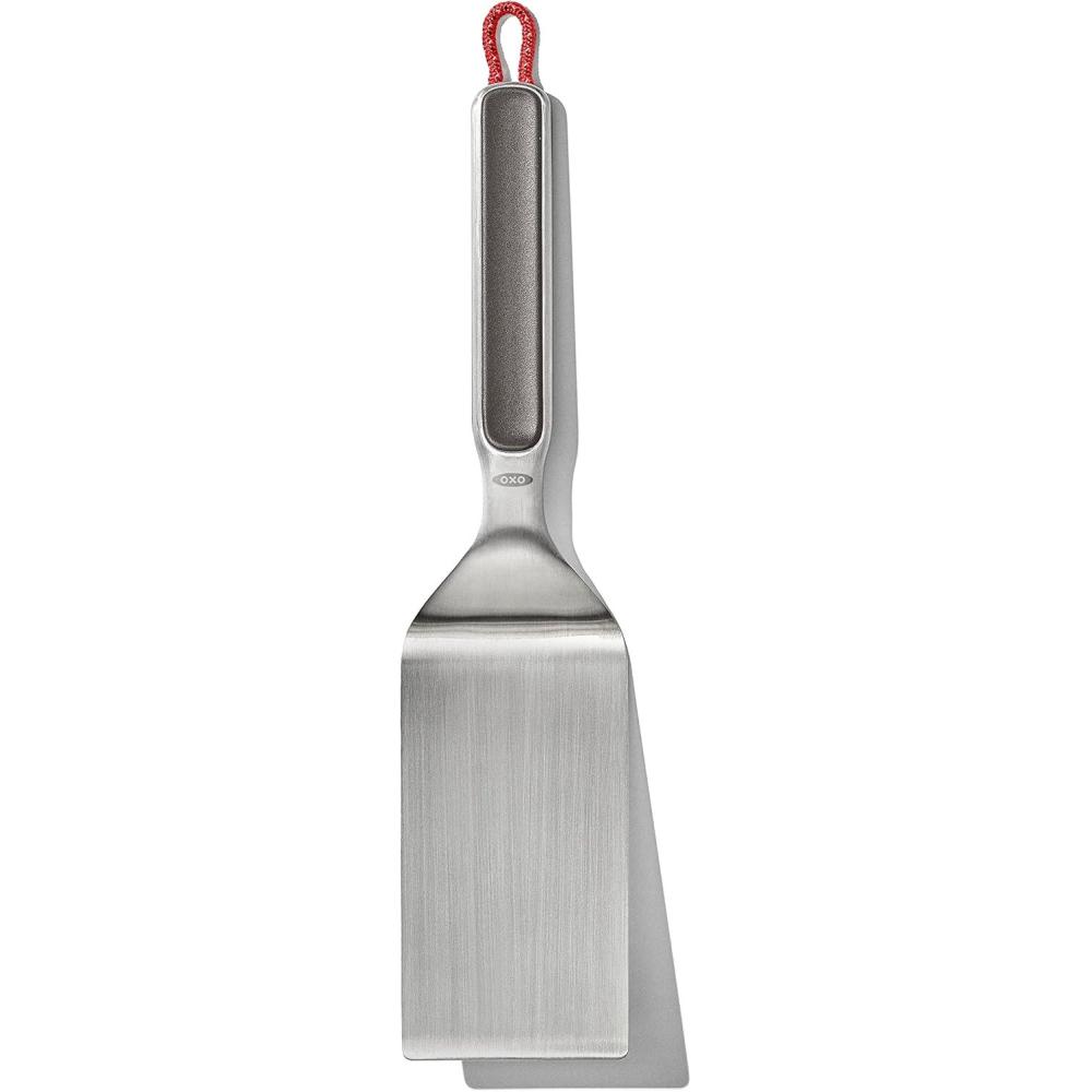 Upgrade your campsite breakfasts with the OXO Outdoor Camp Stove Griddle Turner. It has a wide, professional-quality stainless steel head that can slide under pancakes on a griddle, scramble eggs in a cast iron skillet or serve hash browns from a stainless steel fry pan. It also has a non-slip handle for a secure grip (even if your hands are wet) and a reflective hanging loop (to help you spot it the in the dark). Dishwasher safe.