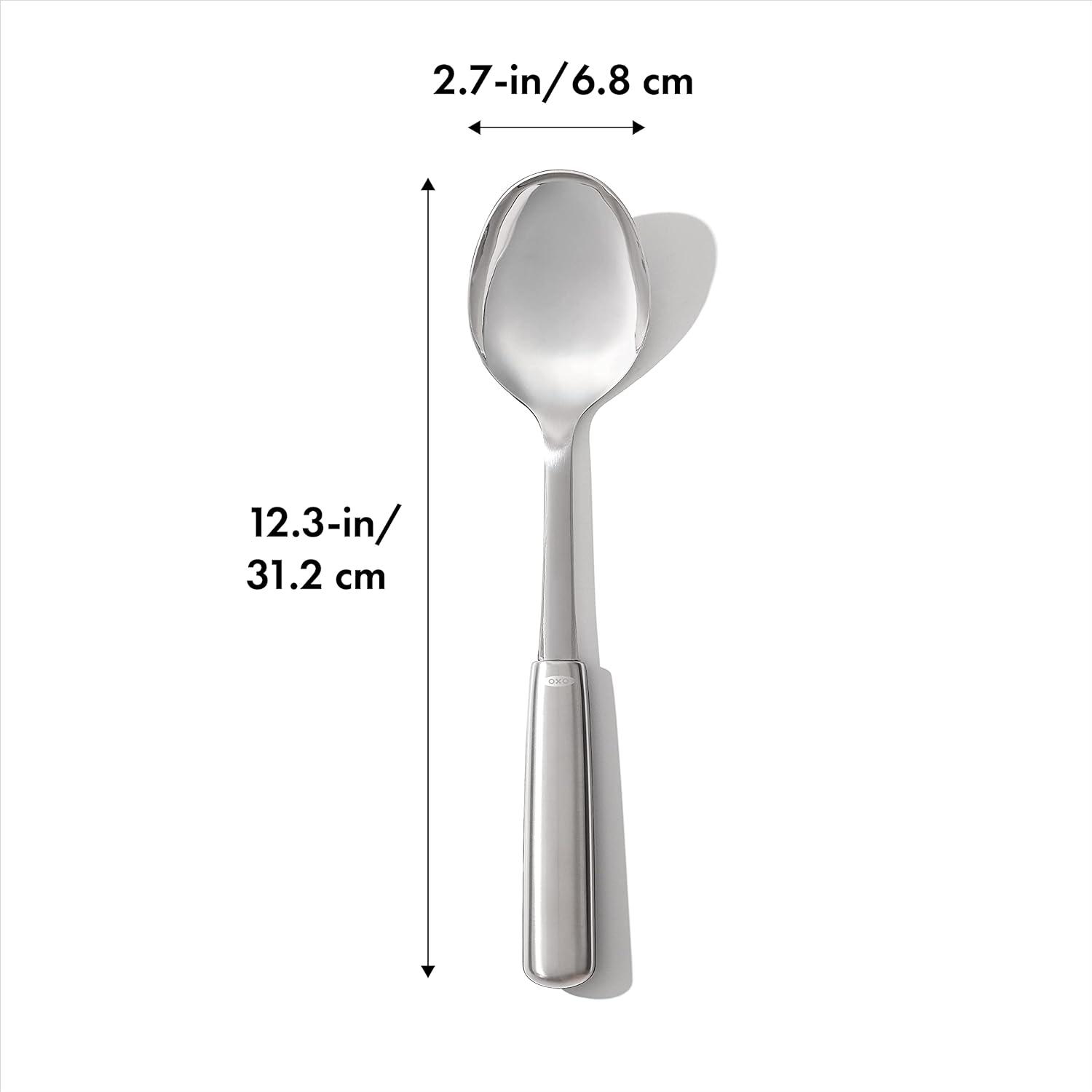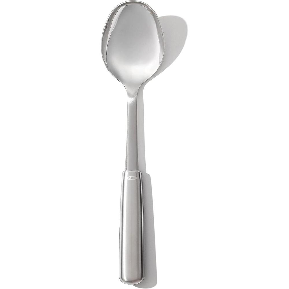 Whether you’re stirring a chili, serving up mac and cheese, or portioning out meatballs, the OXO Steel Cooking Spoon can get the job done. It’s made of stainless steel, which means it’s as durable as it is classic. And it was created with comfort in mind, with non-slip flexible fins along the grip and an ergonomically designed handle. Use it in the kitchen while you work and at the table to serve.