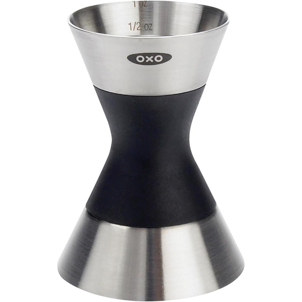 Our Double Jigger does sextuple duty, with one side that measures 1/3 oz, 3/4 oz and 1 1/2 oz (a jigger), while the other side measures 1/4 oz, 1/2 oz and 1 oz. The soft, non-slip grip wraps around the durable stainless steel body for comfortable pouring.