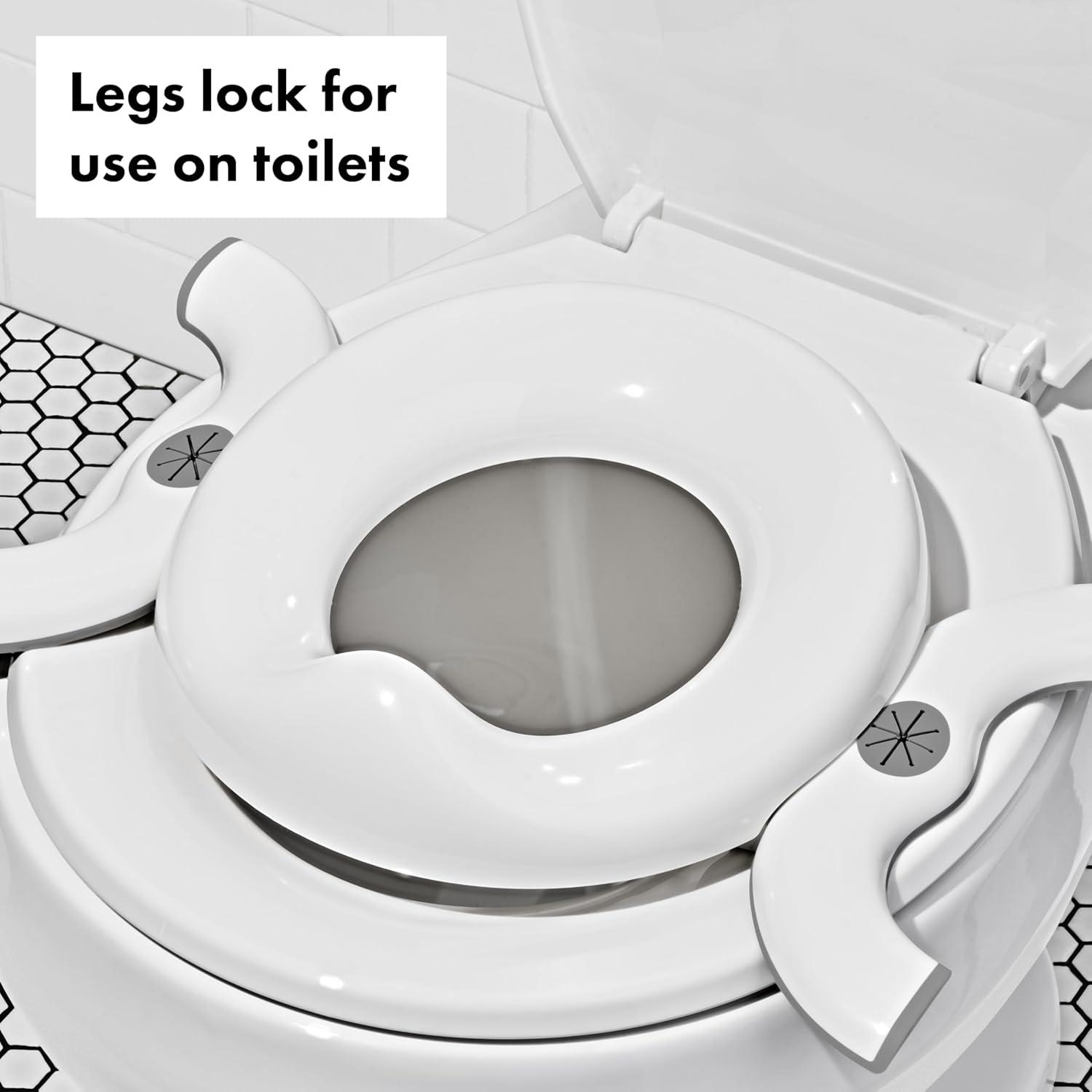 Be prepared for on-the-go potty emergencies with the OXO Tot 2-in-1 Go Potty. The Potty opens quickly and easily and works alone (with disposable bags), or as a seat that rests on top of toilets. The legs lock at the ideal height for growing tots, and soft, flexible flaps hold disposable bags securely in place. Three disposable bags with absorbent pads are included, and refills are available, plus the Potty can accommodate standard plastic bags in a pinch. The legs fold all the way out and non-slip grips keep the Potty stable on round or elongated public toilets. The small seat is sized for little bottoms and the generous shield prevents splatter. The smooth surfaces are easy to clean and the legs fold in, allowing the Potty to fit into the included travel bag for storage in cars, strollers or diaper bags.