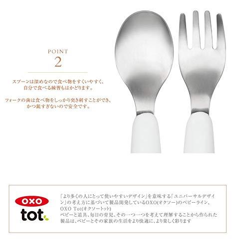 The OXO Tot Fork & Spoon Set is perfect for littles ones learning to self-feed like big kids. The stainless steel Fork tines are rounded but can still spear food, and the matching Spoon is designed for optimal scooping. The curved, non-slip handles are easy for little hands to hold and feature a flat spot to keep the utensils from rolling off tables or high chair trays. Dishwasher safe.
