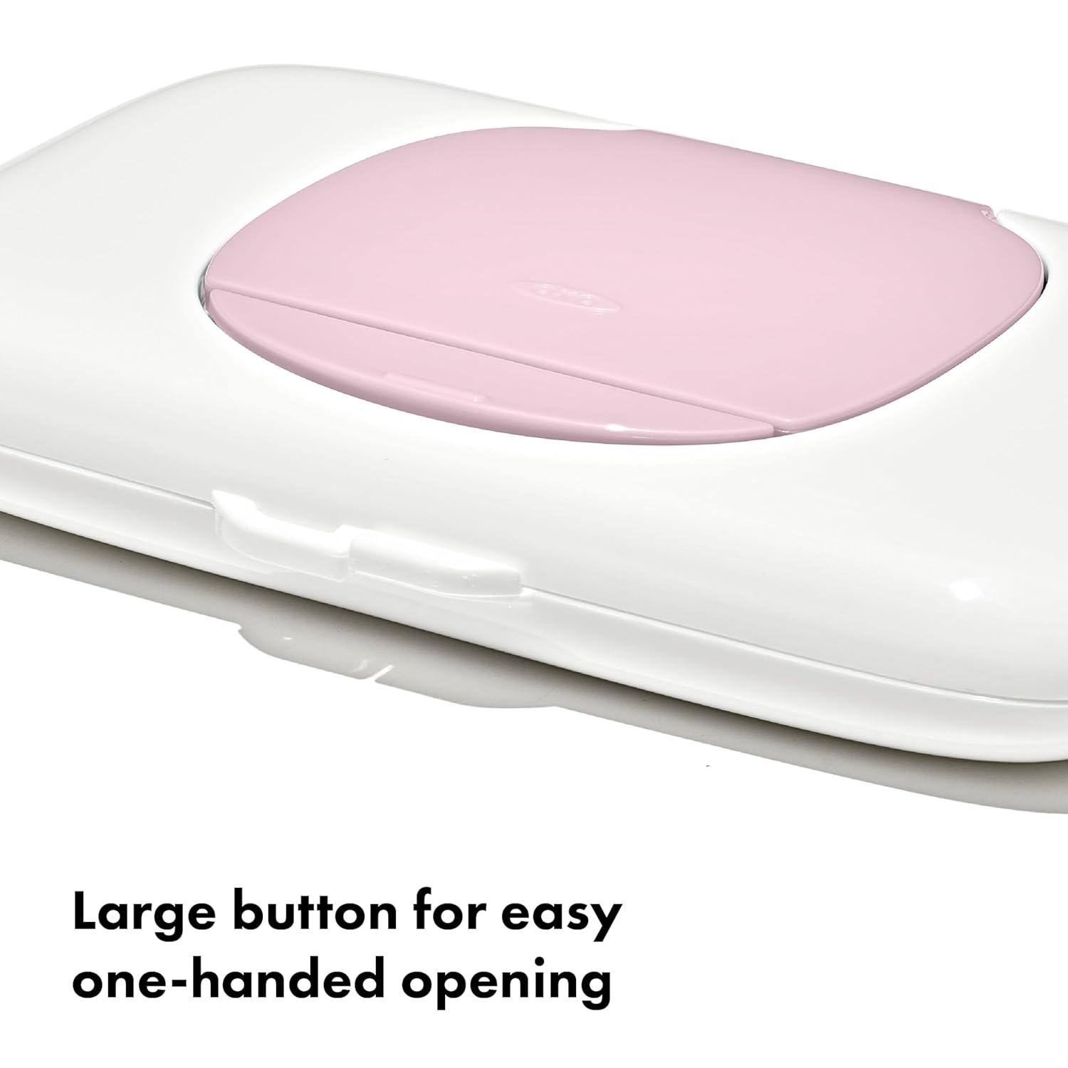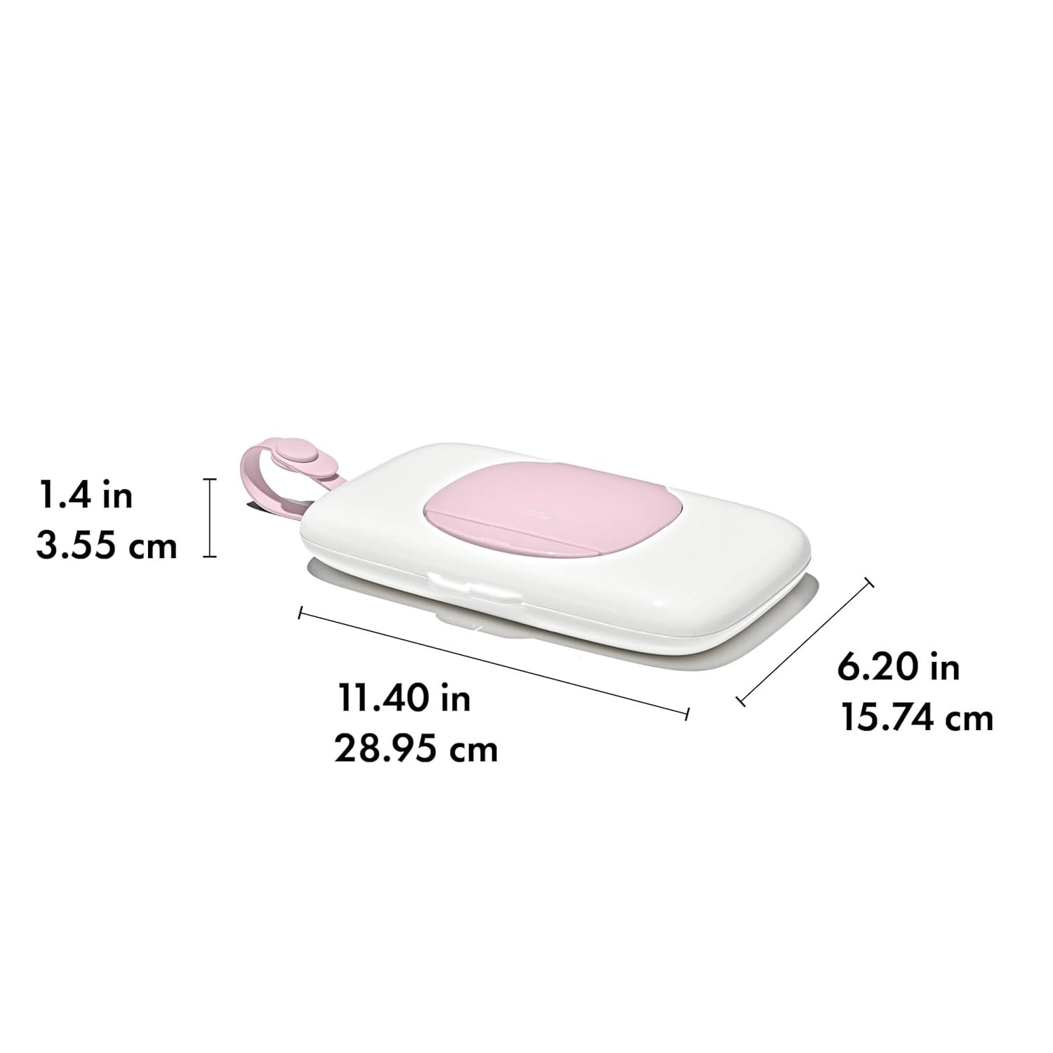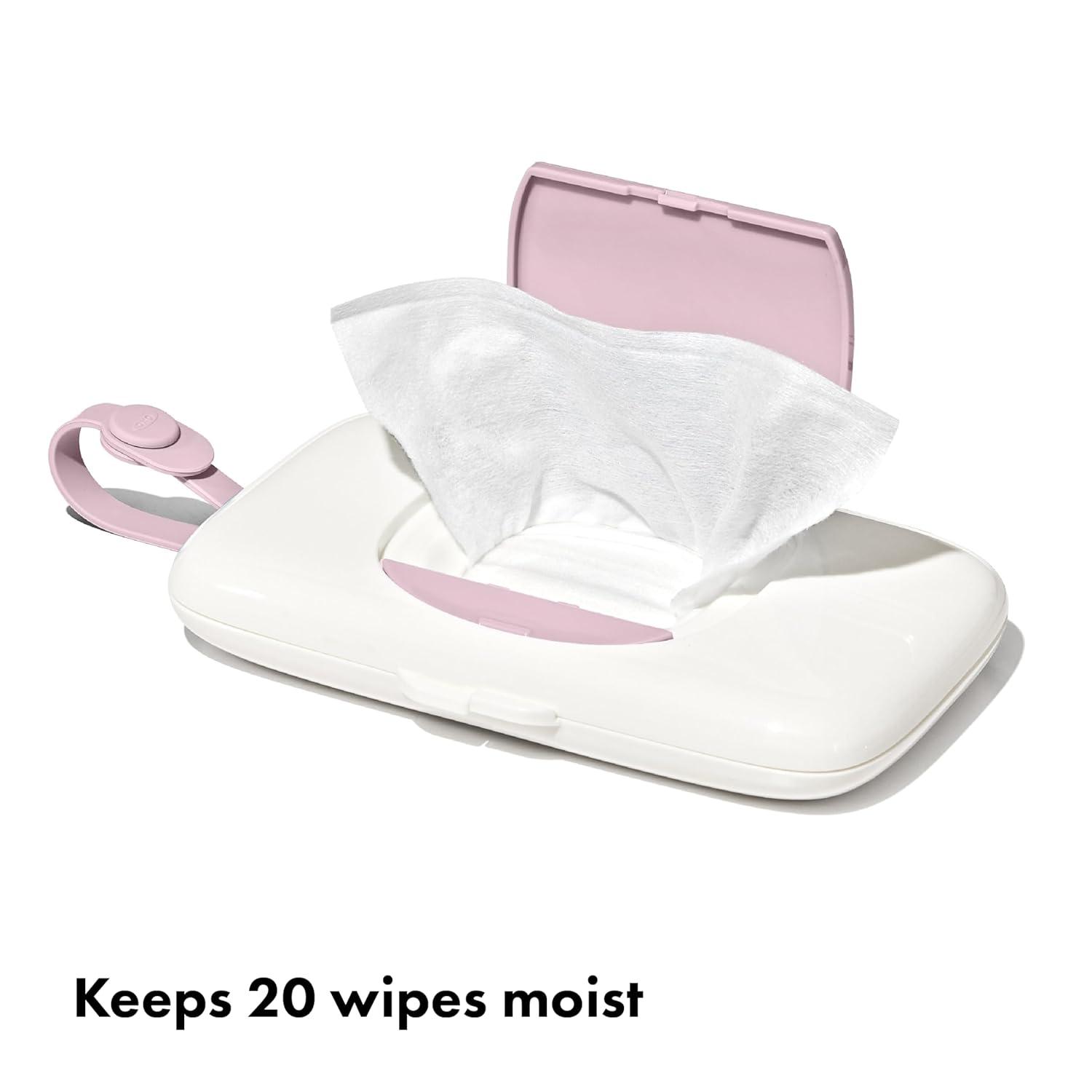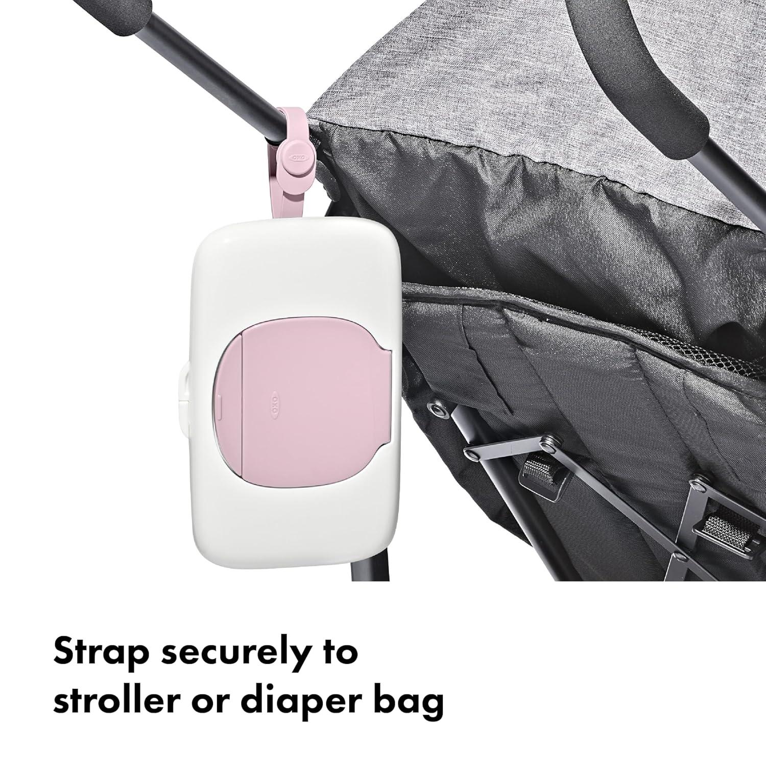 The OXO Tot On-the-Go Wipes Dispenser is perfect for keeping wet wipes within reach while traveling. Push the large button to reveal a large opening, offering easy access to your preferred brand of wipes. A handy silicone strap attaches directly to strollers and diaper bags, or tuck the slim Dispenser into your bag or purse. BPA-free body. Set of two so you can have one in the car and one in the diaper bag.