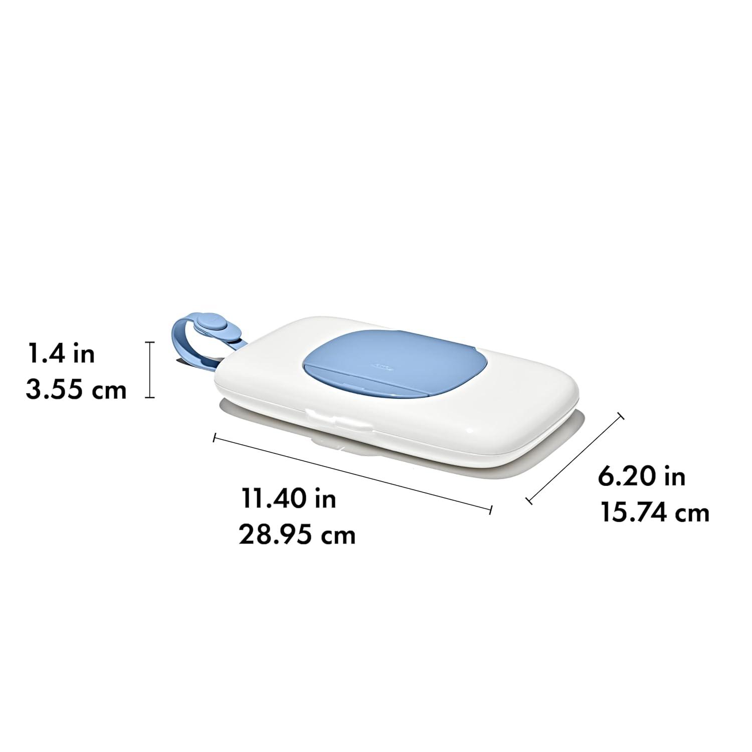 The OXO Tot On-the-Go Wipes Dispenser is perfect for keeping wet wipes within reach while traveling. Push the large button to reveal a large opening, offering easy access to your preferred brand of wipes. A handy silicone strap attaches directly to strollers and diaper bags, or tuck the slim Dispenser into your bag or purse. BPA-free body. Set of two so you can have one in the car and one in the diaper bag.