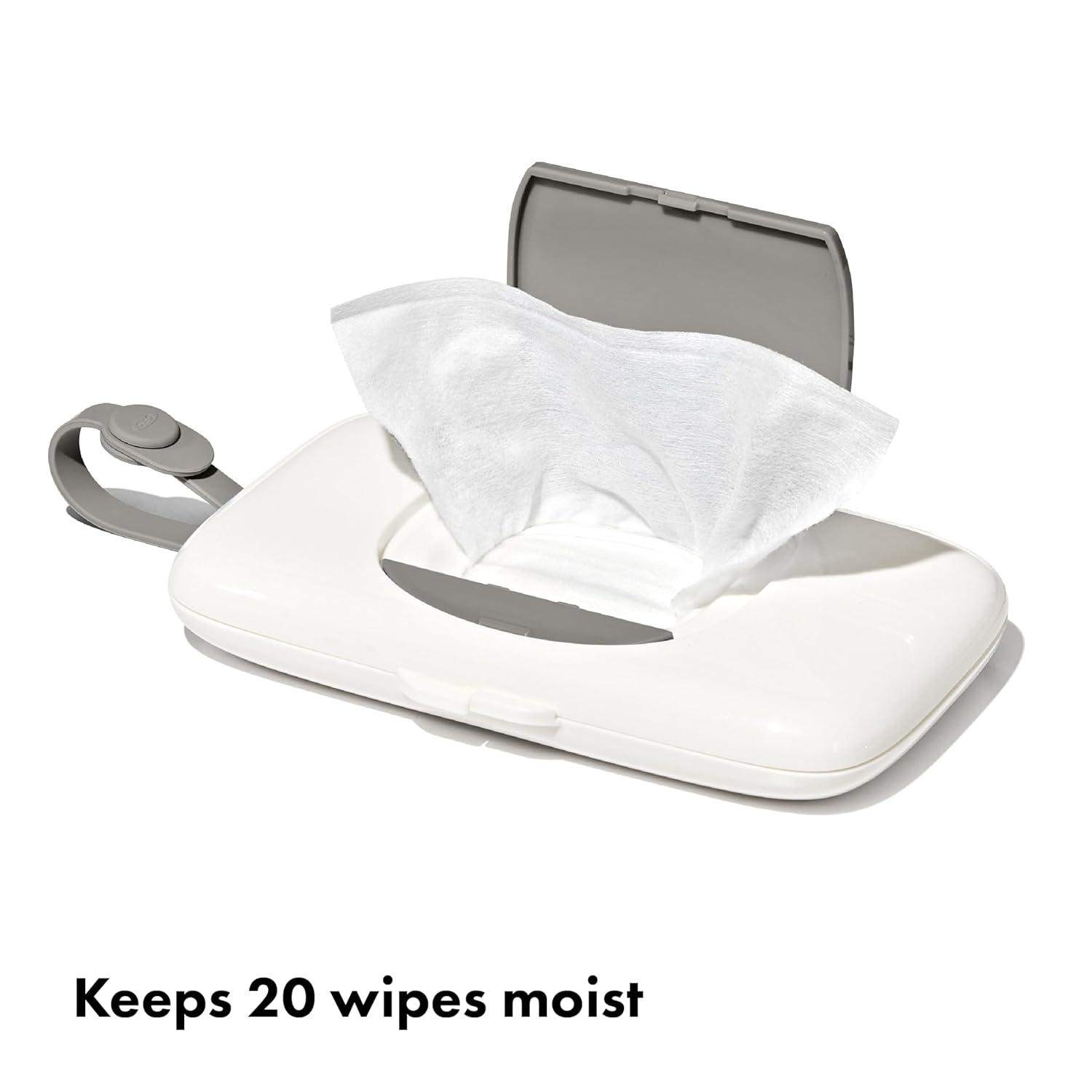 Wherever you take your tot, you know there's always a chance of a mess. Our On-the-Go Wipes Dispenser has a handy strap to secure it to a stroller or diaper bag, so you can always have it at the ready. A simple, one-handed push of the button reveals a large opening that dispenses one wipe at a time.